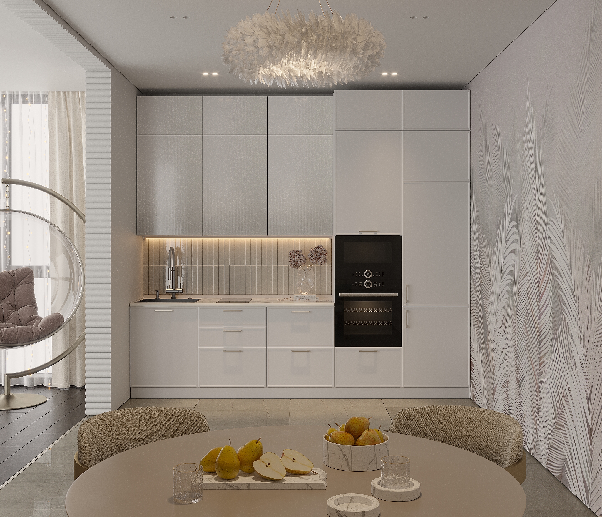 Современный дизайн: Тонкая рамка придает кухне элегантный и стильный вид. Эта деталь делает фасады визуально легкими и воздушными, что особенно актуально для небольших пространств.