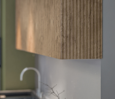 Современный дизайн: Эстетика и текстура рифленых фасадов придают кухне оригинальный вид, создавая игру света и тени. Это не только красиво, но и практично — такие поверхности легче чистить и они менее подвержены появлению царапин.