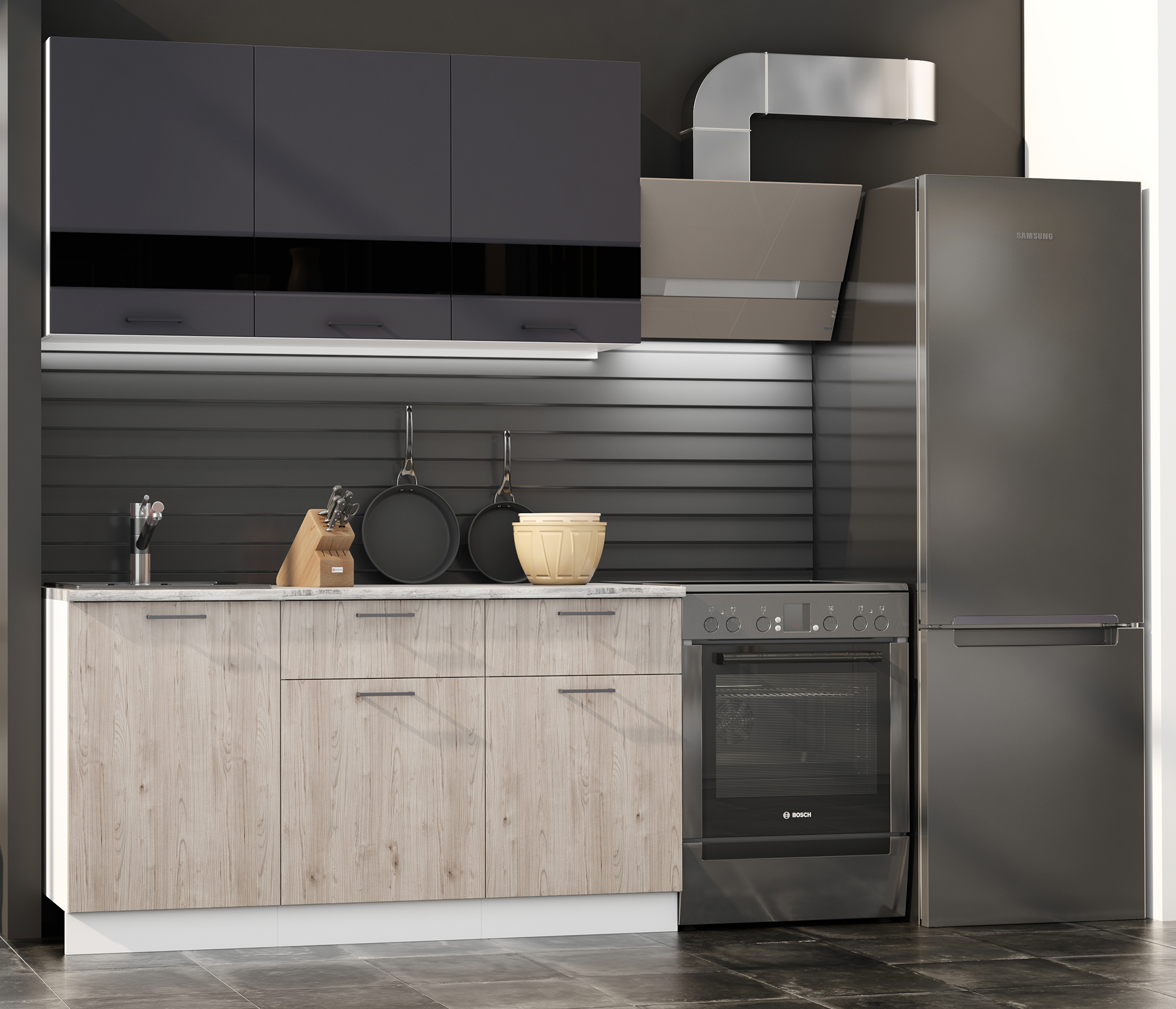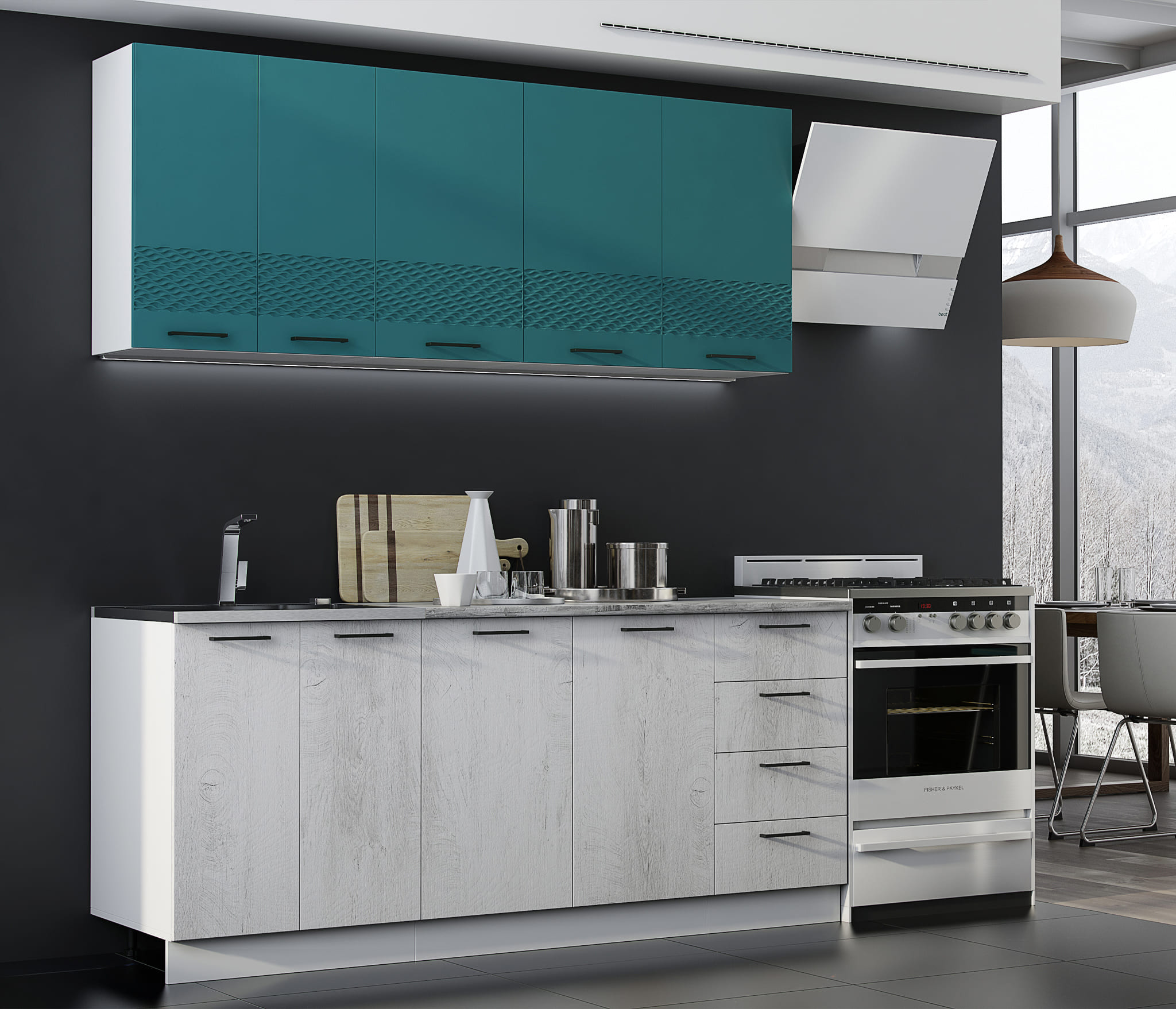 - Желательно, чтобы в тумбах и рабочих столах имелись ящики, так как на кухне требуется много мелочей, которые удобно будет туда складывать.