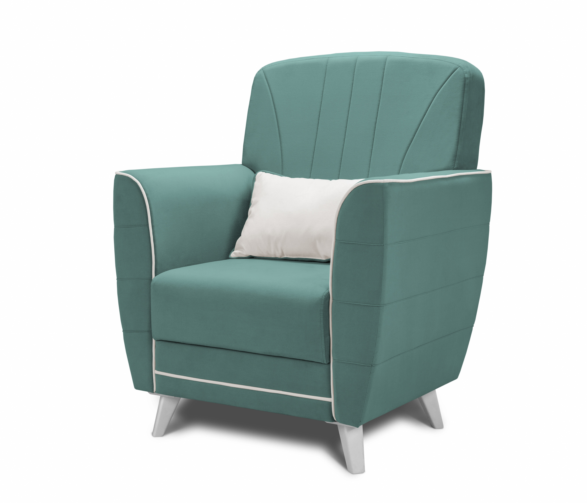 Обивка кресла выполнена в велюре с отличными техническими характеристиками. Контрастный кант и декоративная прострочка на спинке делает модель привлекательной.