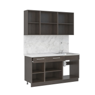 Гарнитур Маша шириной 1.6 м спроектирована для тех хозяек, которые мечтают готовить на удобной и стильной кухне. Верхние модули: ШВ 600, ШВ 600, ШВ 400 - (ВхГ) 71.5х30 см. Нижние модули: ШНМ 600, ШН1Я 600, ШН1Я 400 - (ВхГ) 84.5х52 см (высота указана с учётом столешницы). Декор столешницы - Антарес 26 м.