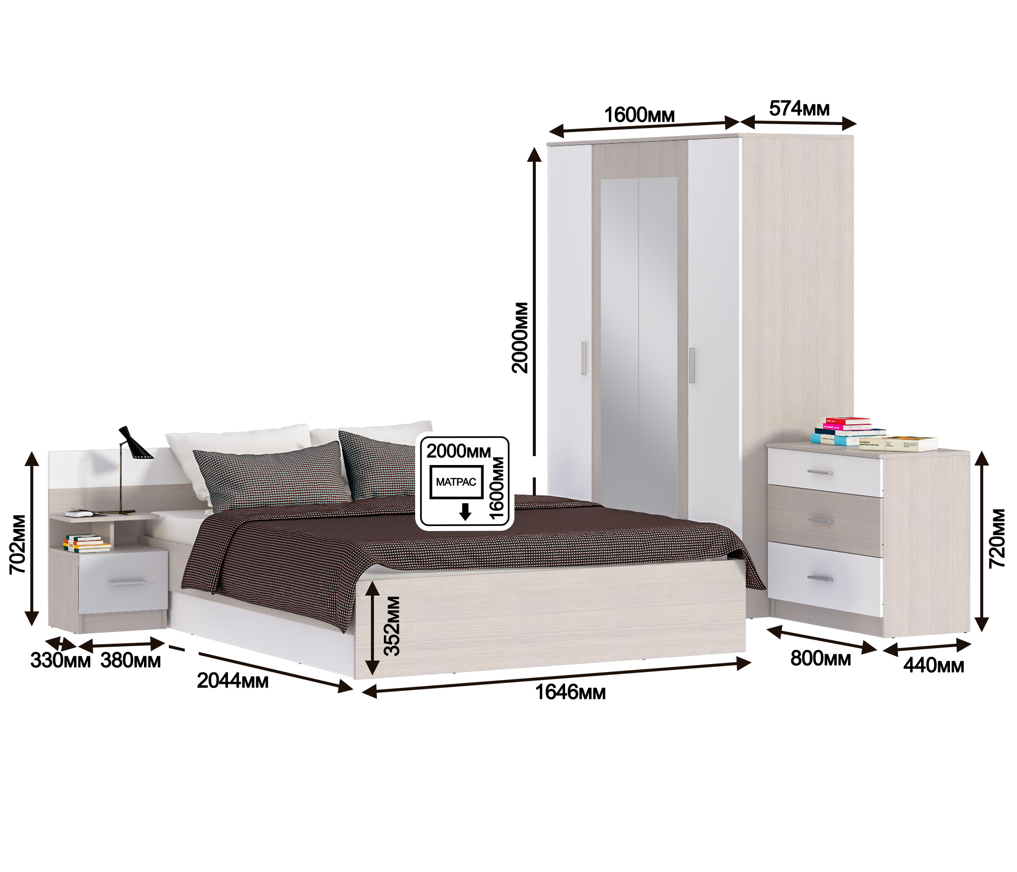 Обратите внимание, что матрас не входит в комплектацию, мы рекомендуем приобрести матрас размером 1600х2000 мм.