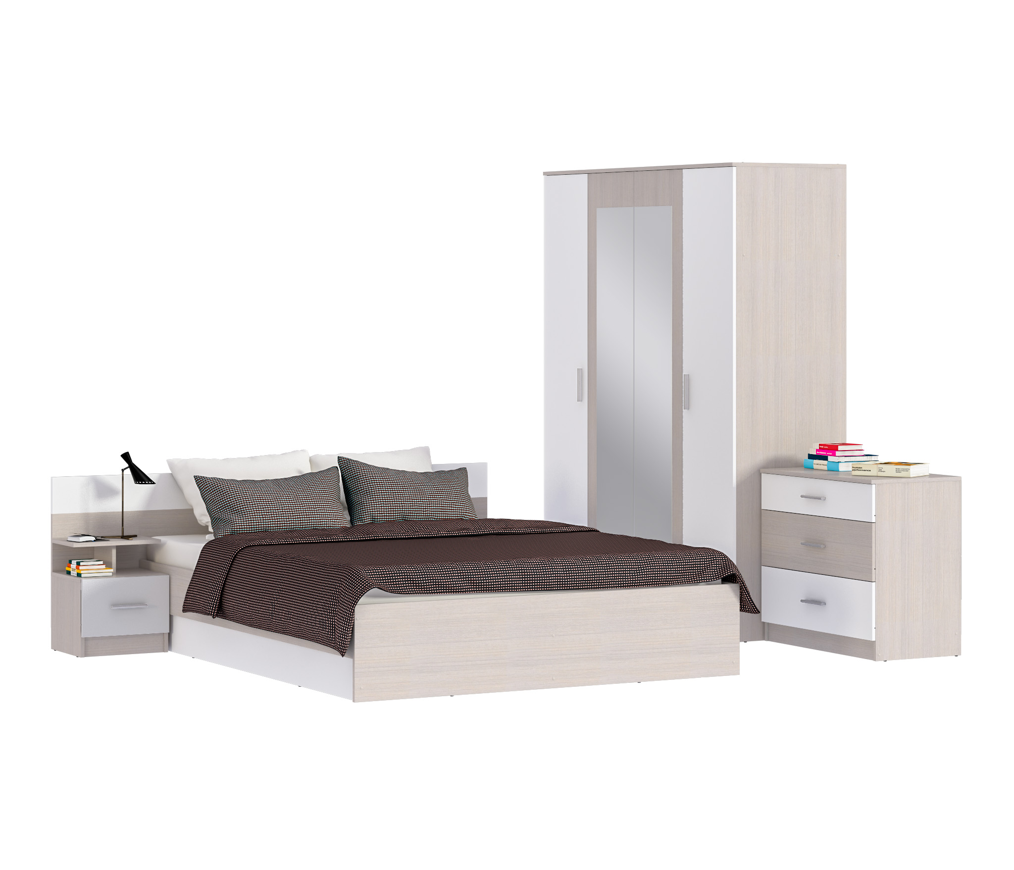 Такое цветовое решение придает спальне свежий внешний вид, добавляя нотку элегантности в ваш интерьер. Комплектация набора включает в себя все необходимое для уютного пребывания в спальне: