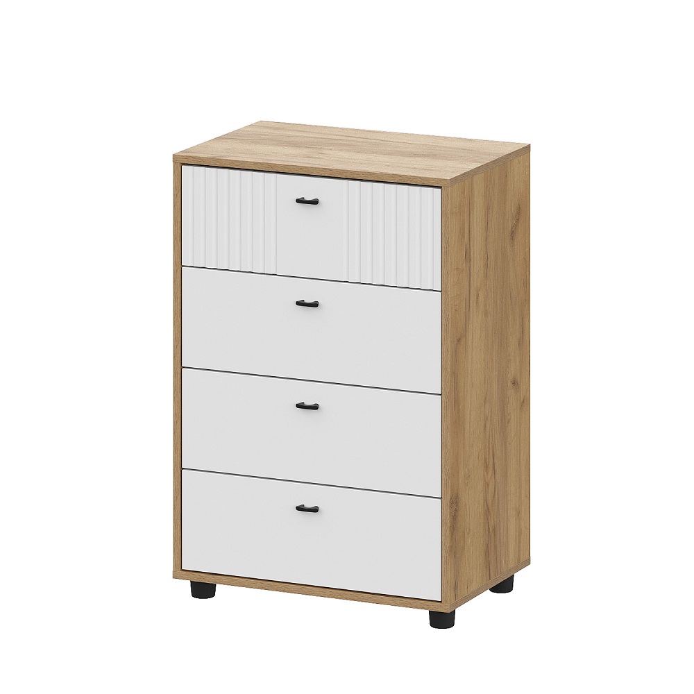 Модульная спальня Милан выполнена в современном стиле и привлекает внимание сочетанием теплого древесного декора корпуса и белыми текстурными фасадами.