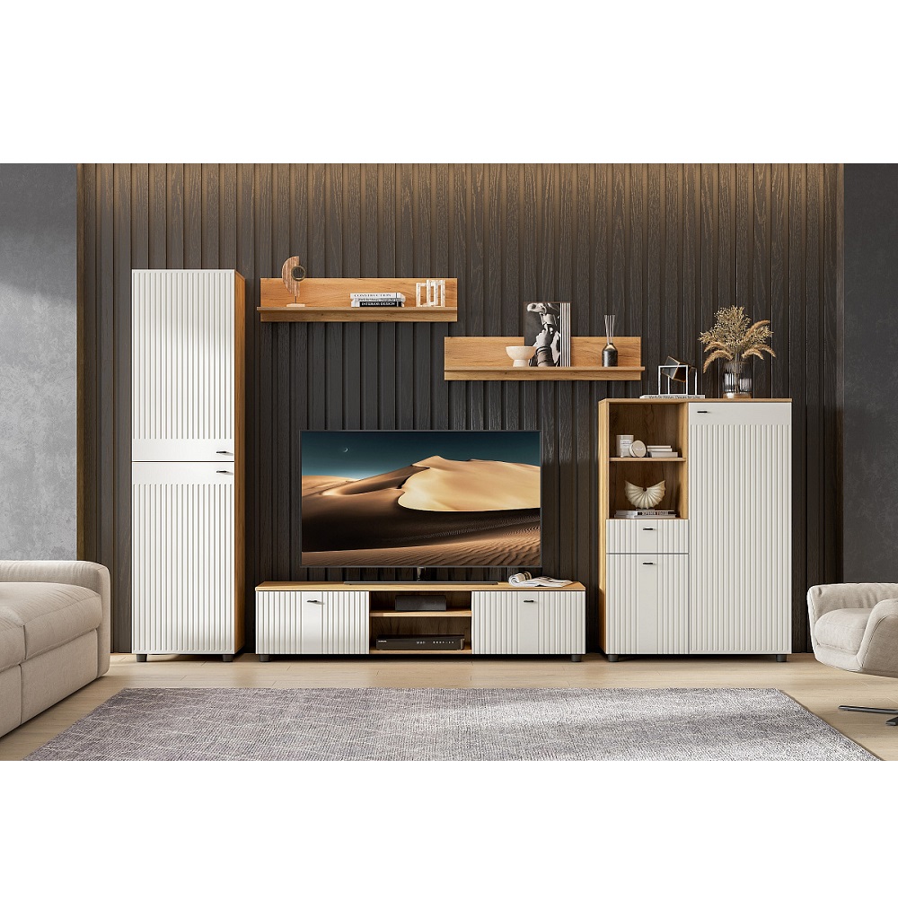 Дополните интерьер гостиной фактурным и не банальным модулем - шкафом-пеналом из серии Милан.