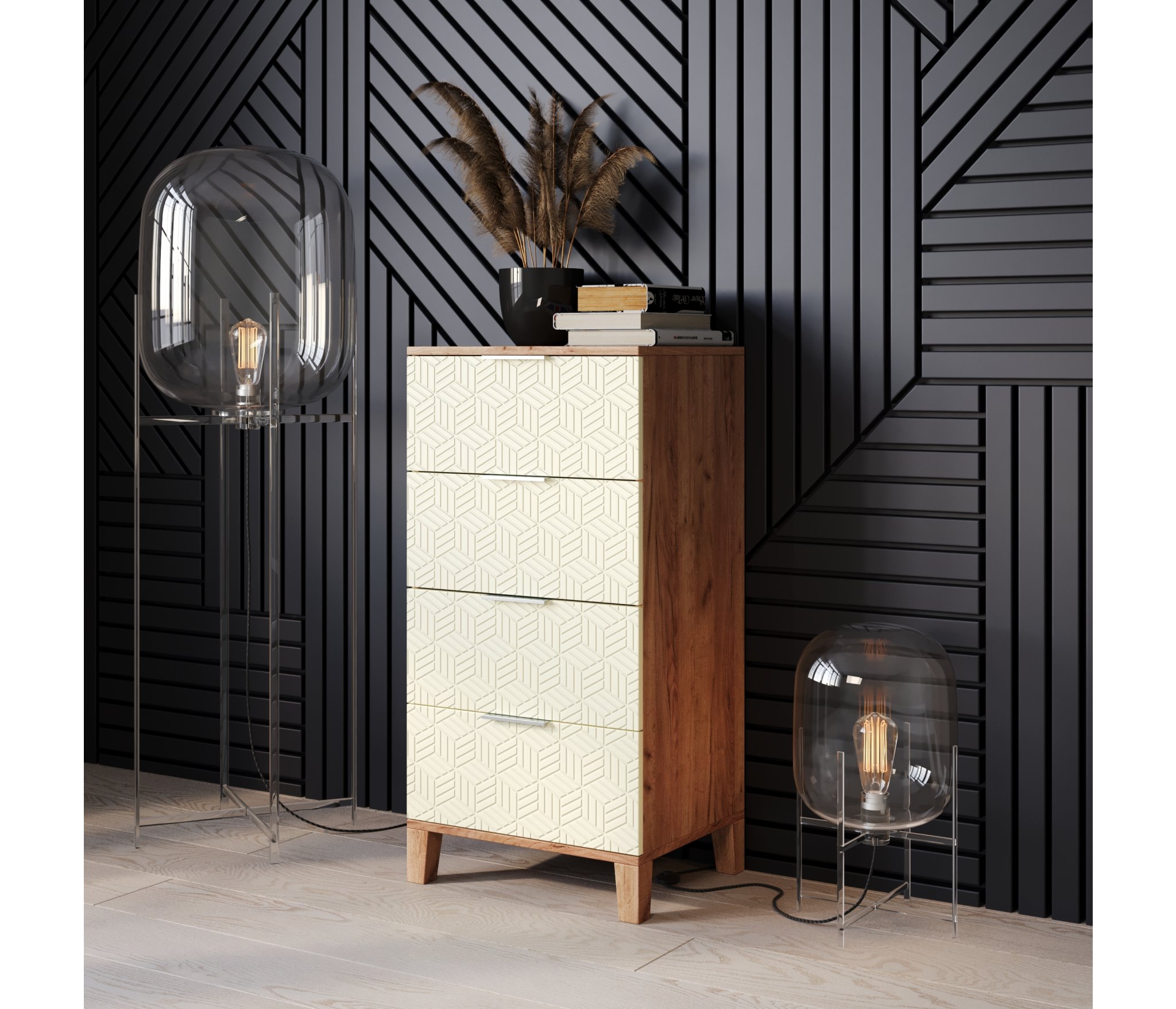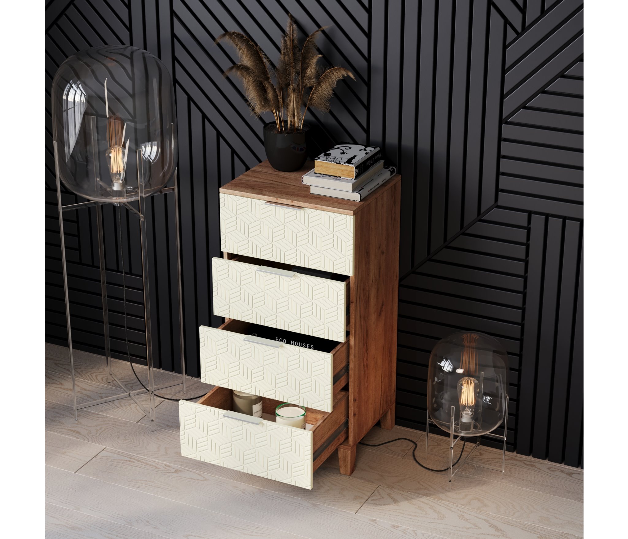 Комод ""Марвин"" выполнен из ЛДСП класса эмиссии E1, фасады МДФ покрытые матовой пленкой. Ножки выполнены из массива бука.