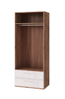 Универсальное внутреннее наполнение в виде антресольной и нижней полок, а также продольной штанги практично дополнено выдвижными ящиками.