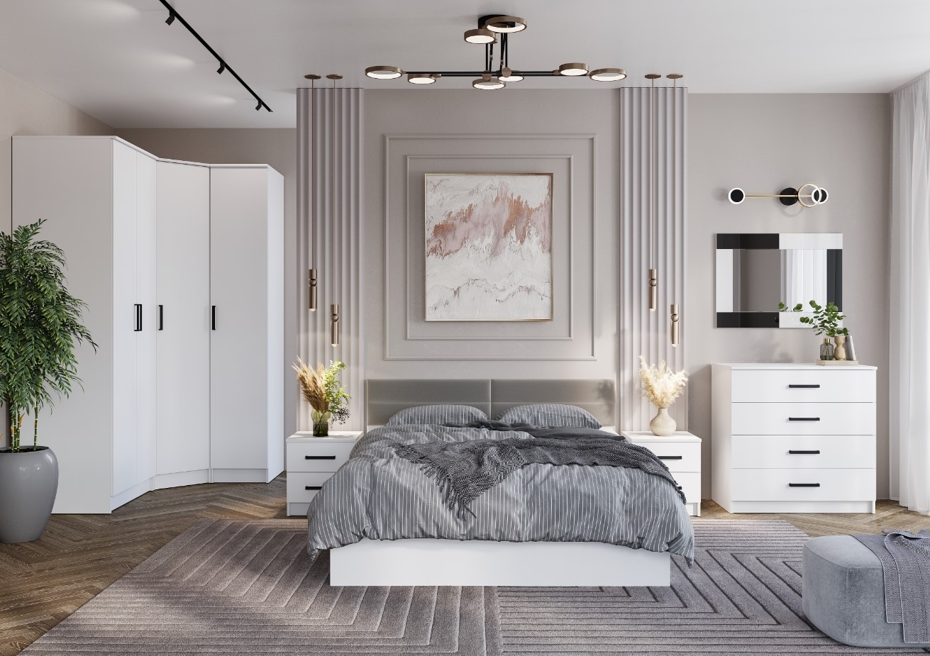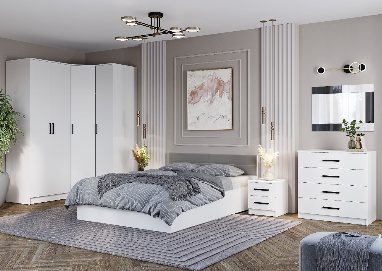 Коллекция мебели для спальни Фьюжн является воплощением эстетики минимализма. Двуспальная кровать Фьюжн станет центром Вашей спальни и подарит много часов сна и отдыха. Мягкая деталь на изголовье обтянута износостойкой мебельной тканью приятного серого цвета.