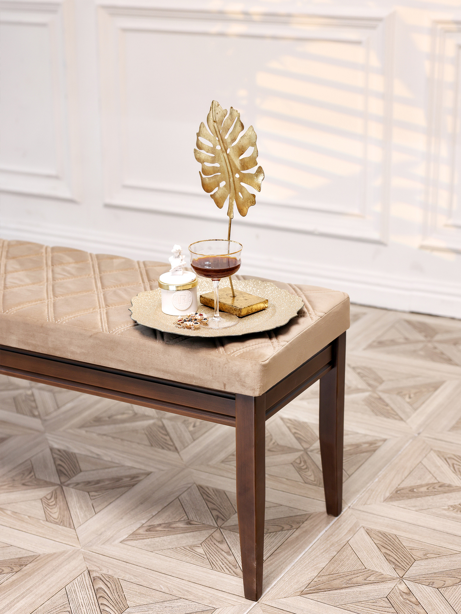 Роскошная банкетка в классическом стиле идеальное дополнение в любой интерьер. Уникальный дизайн, созданный профессионалами, сочетает в себе современные минималистичные мотивы, а также незыблемую классику. Материал банкетки - бук, долговечный, прочный, а также натуральный и невероятно приятный на ощупь. Благодаря уникальным итальянским и немецким швейным машинам мы создали уникальный шов, который делают при создании обивки немецких и итальянских автомобилей. Наша банкетка - универсальный предмет мебели для гостиной и спальни может использоваться разными способами. Прикроватная банкетка в изножье кровати, для складывания покрывала перед сном или одежды. Идеально подойдет для туалетного столика. Пуфик в прихожей, на котором можно присесть и комфортно обуть обувь. Посадочные места на маленькой кухне: вместо кухонного дивана поставьте пару банкеток - диванов. Вы можете задвинуть банкетку под стол и она не будет мешать. Банкетку - диван подойдет для посетителей торговых центров и магазинов, для размещения в примерочной или в торговом зале. На банкетке можно удобно отдохнуть или положить одежду, сумку. Банкетки также используют в офисах, салонах красоты, конференц залах, гостиницах и ресторанах. Ткань легко отмывается, а ножки легко вкручиваются. Сборка занимает не более 5 минут. Размеры банкетки: 1015 мм* 480мм*410мм.