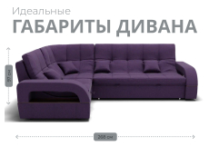 Он имеет высоту 97 см, ширину 187 см и глубину 268 см. Диван обладает универсальным расположением угла, что позволяет его использовать в любом помещении.