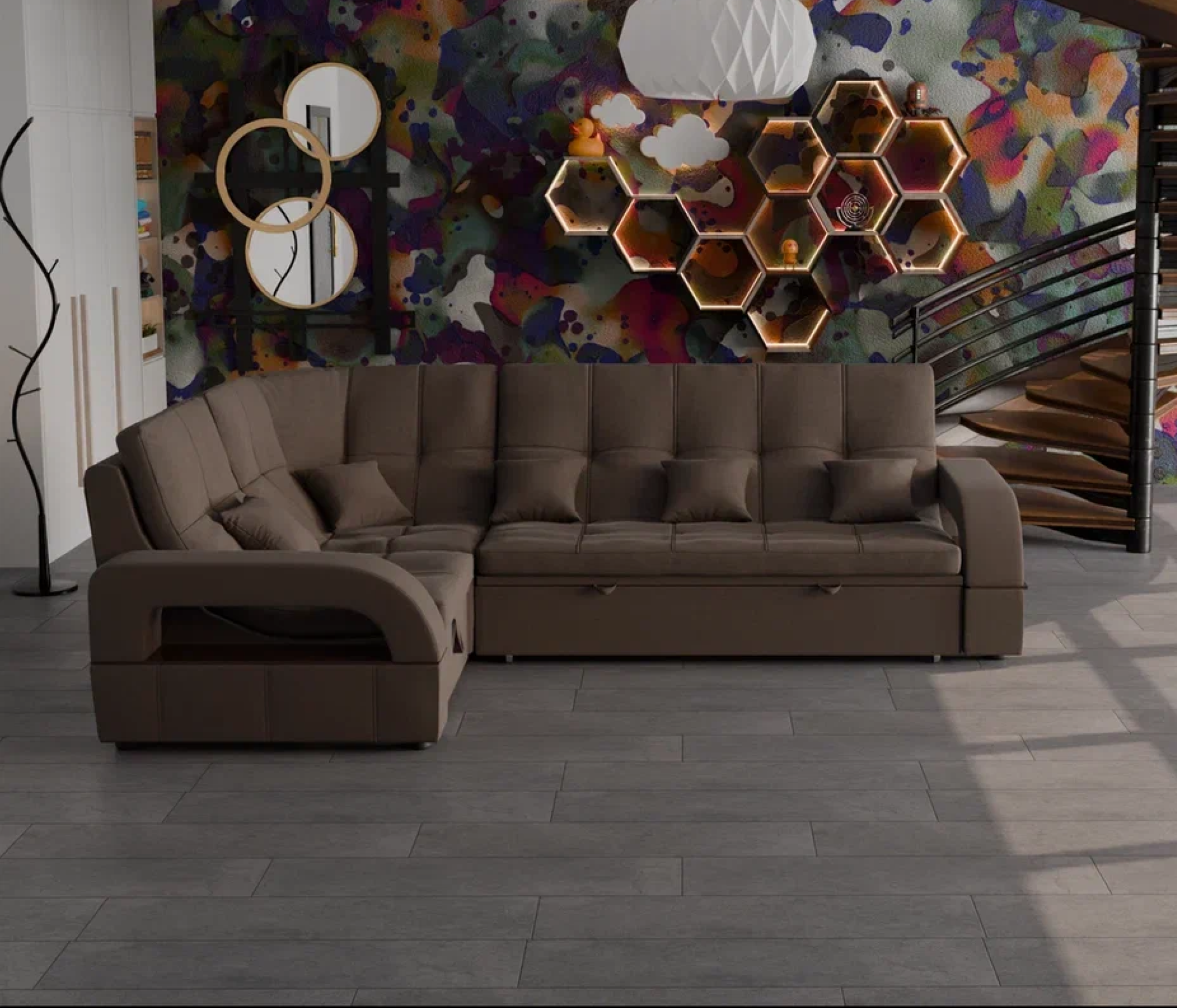 Он имеет высоту 97 см, ширину 187 см и глубину 268 см. Диван обладает универсальным расположением угла, что позволяет его использовать в любом помещении.