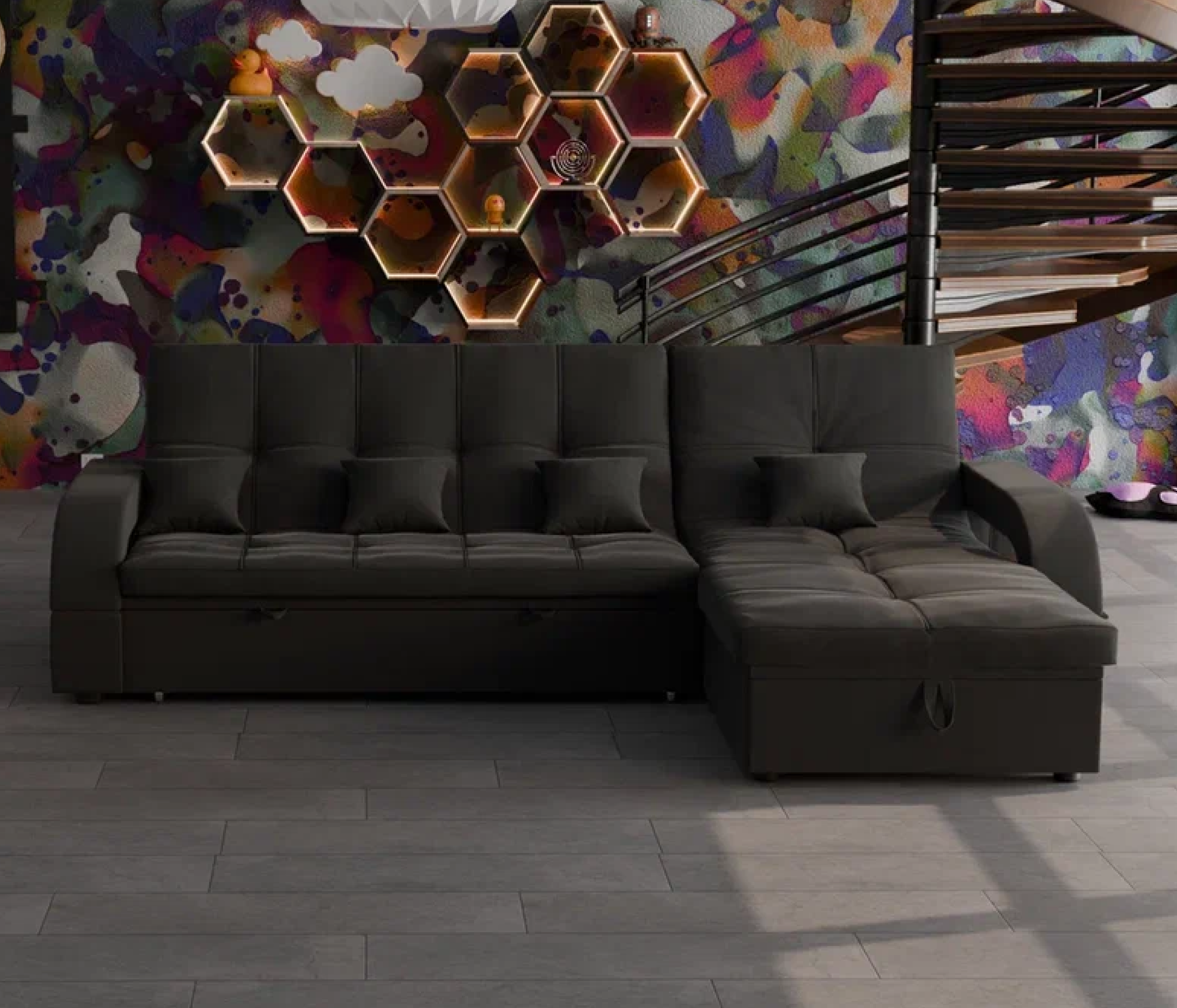 Отзывы о Столплит Модульный диван Майами-2,микровелюр,антивандальная и водостойкая ткань,венеция Real black (Черный)
