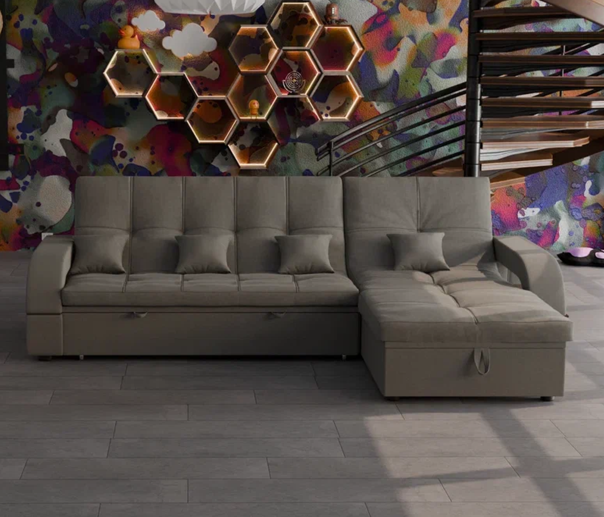 Он имеет высоту 97 см, ширину 268 см и глубину 175 см. Диван обладает универсальным расположением угла, что позволяет его использовать в любом помещении.