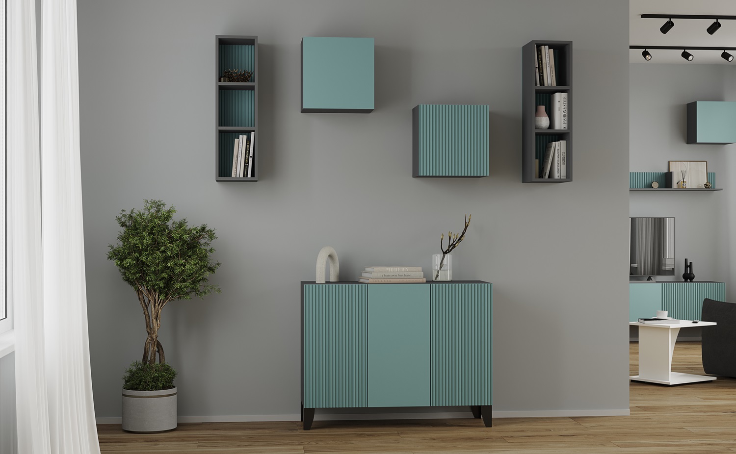 Открытая навесная полка Сириния впишется в современный интерьер гостиной и украсит ее.