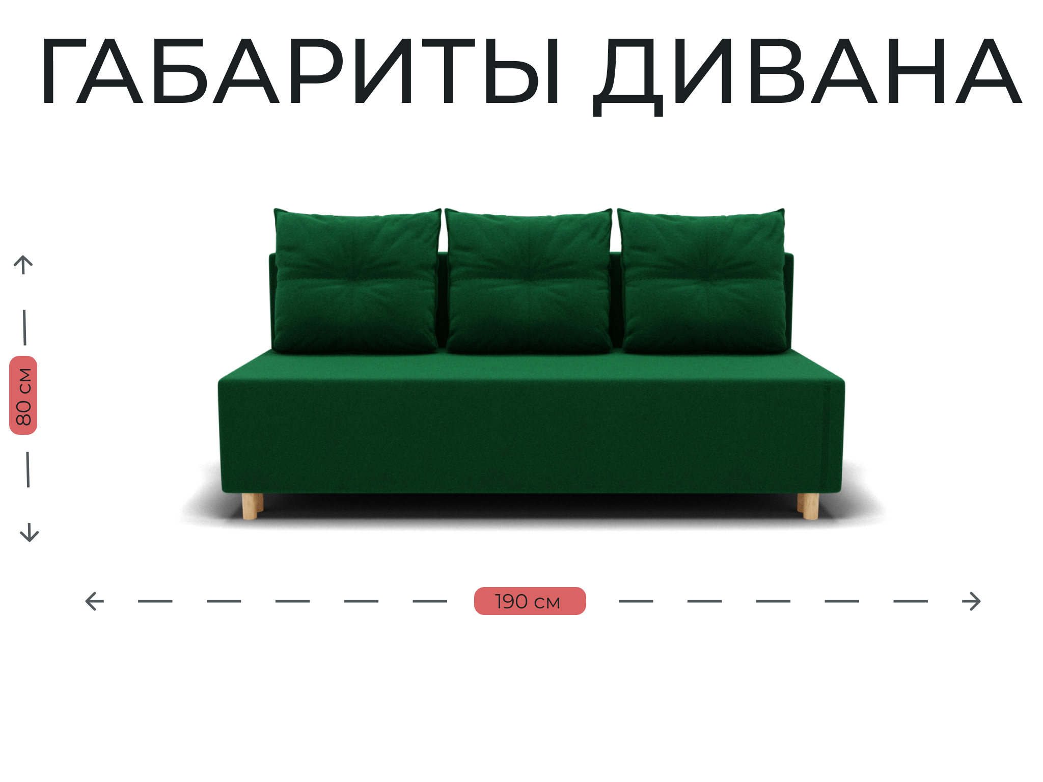 Прямой диван Сияние,еврокнижка,велюр (Зеленый) Код I0000396654