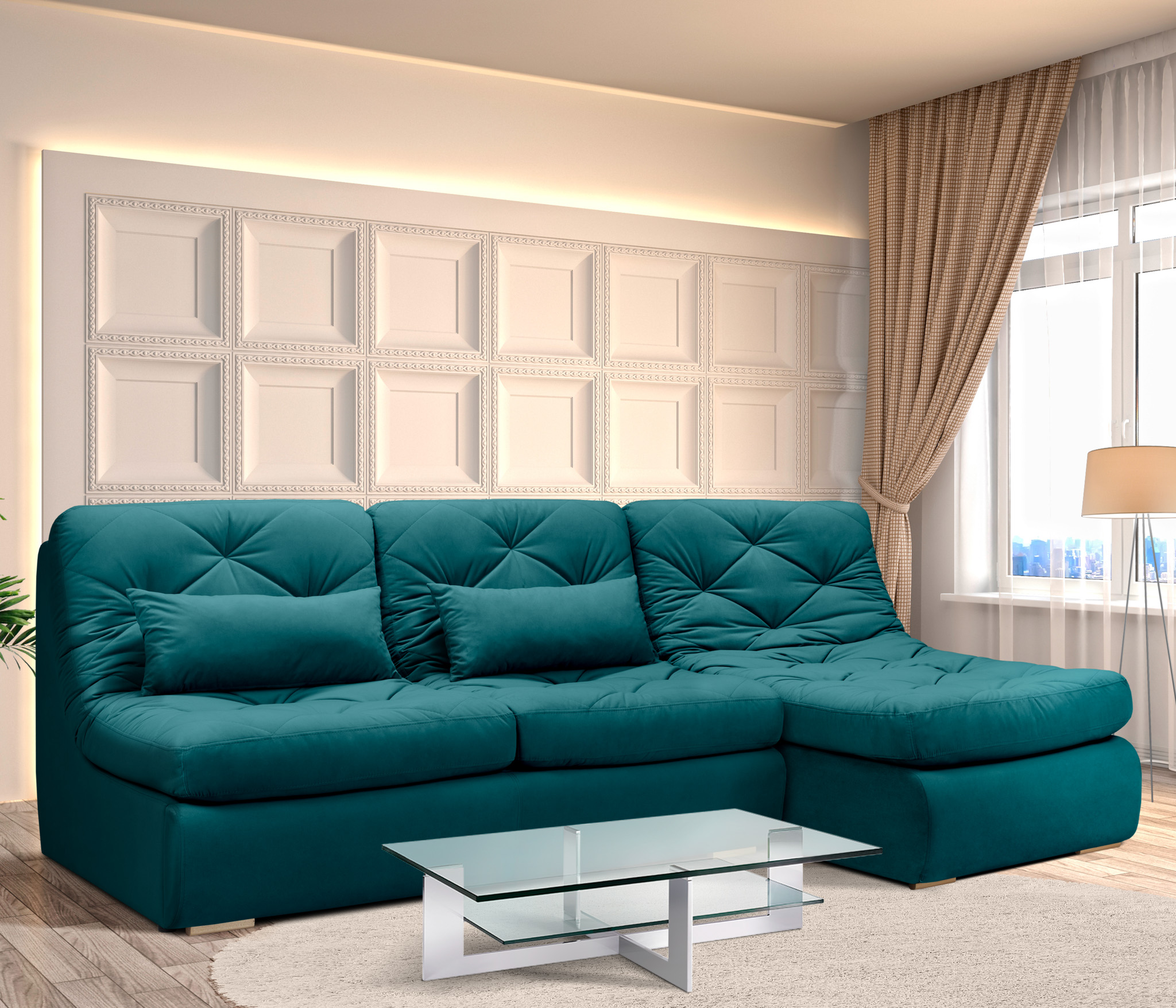 Угловая часть дивана при желании легко меняет свое расположение. Обивка дивана выполнена в качественном велюре, с хорошими техническими характеристиками.