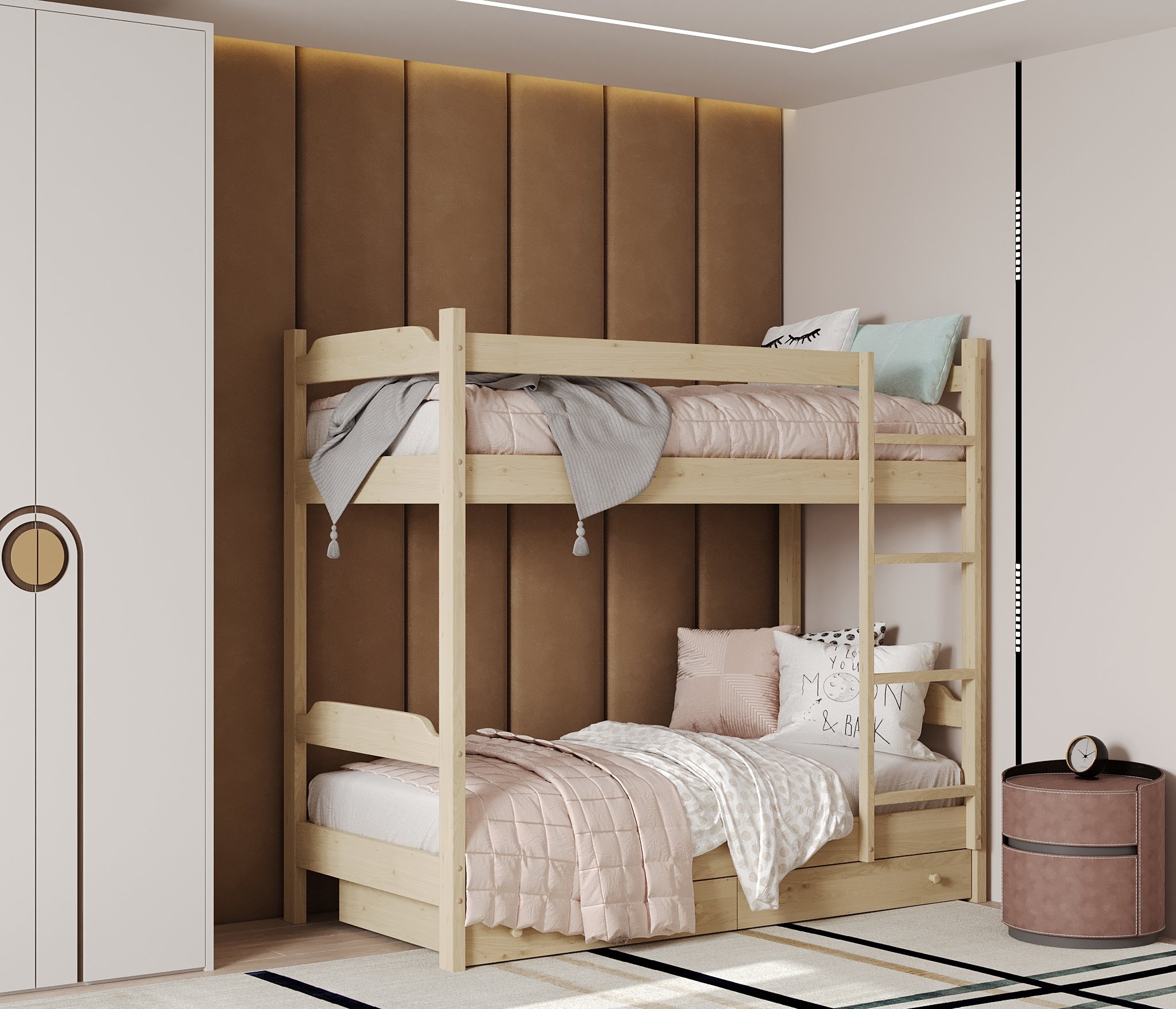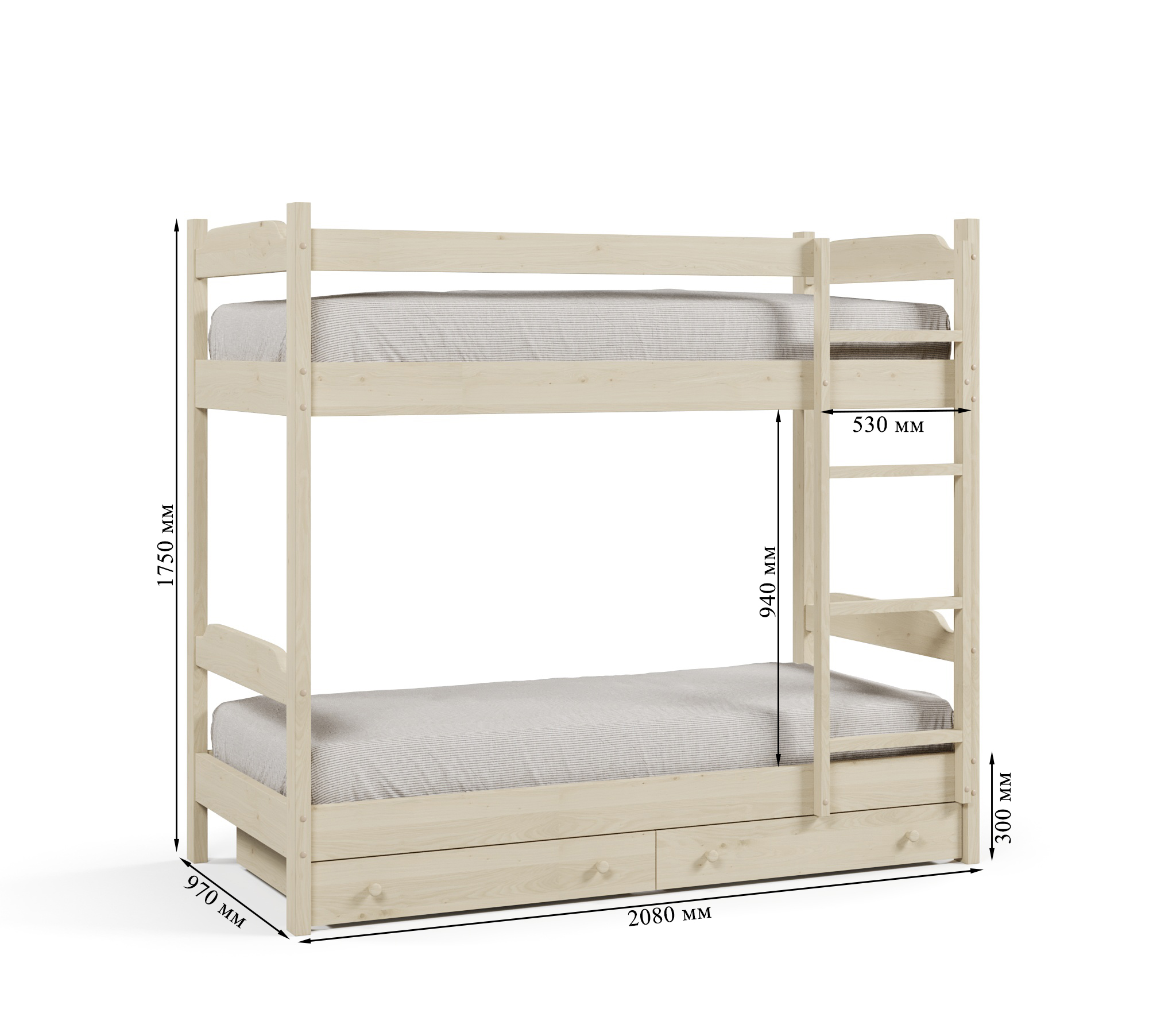 Для создания Кровати двухъярусной Антошка - использовался прочный и приятный на ощупь материал массива сосны. Благодаря качественным материалам данная модель прослужит вам долгие годы.