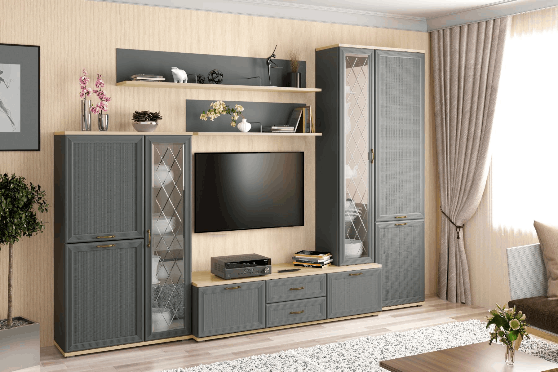 Гостиная Карина ГК-1001 (Ясень Асахи/Серый Оникс)