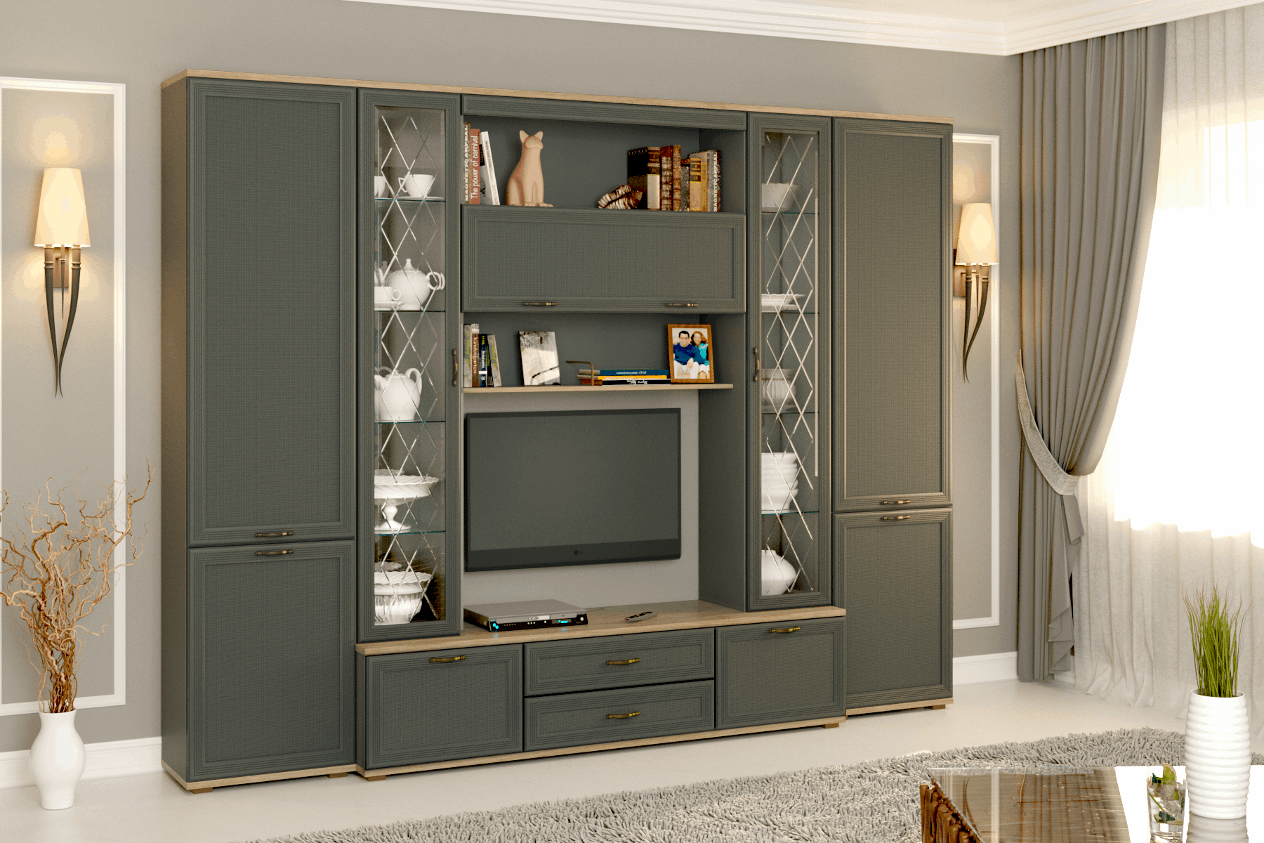Гостиная Карина ГК-1003 (Гикори Джексон светлый/Серый Оникс)