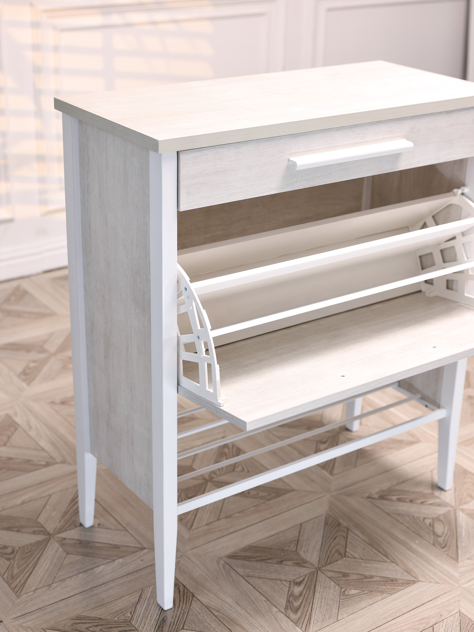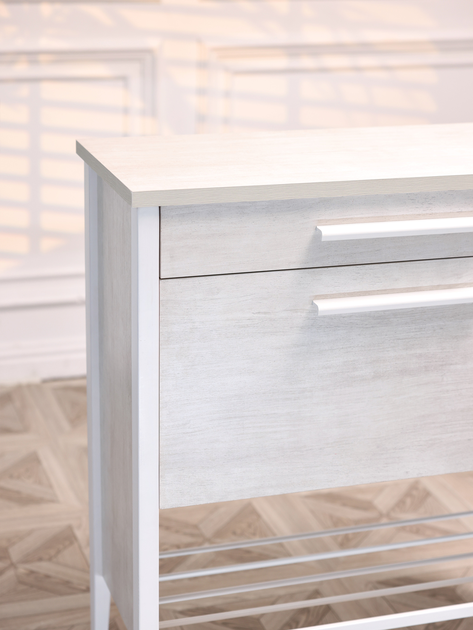 Тумба комод обувница этажерка для обуви это незаменимые части современного интерьера любого дома. При разработке галошницы получилась многофункциональная вещь, которую можно использовать под свои задачи. В нашей модели мы воплотили эти все функции в одну модель. Деревянная тумба из натурального бука с одним глубоким выдвижным ящиком и 1 полкой для хранения нужных вам вещей, а также с откидной полкой для обуви. Данная тумба для прихожей обувная полка сочетает в себе хорошее качество и отличную цену, разнообразие цветов поможет вам с легкостью выбрать нужный вам цвет в интерьер. Вы можете хранить на полках обувь или дополнить комод стильными контейнерами, органайзерами и сложить в них шапки, шарфы если использовать тумбочку в коридоре. Станет отличным подарком маме, папе, бабушке, дедушке, свекрови, другу и подруге на новоселье, день рожденье, или без повода порадовать дорогих людей. Наши изделия подходят для интерьеров стиле лофт, классическом, современном, модерн. Ножки у тумбы выполнены из качественного бука, ящик и рабочая поверхность из качественного ЛДСП, а полочки из металла. Комод имеет следующие размеры: 800ширина*370глубина*918высота и 22,1 кг вес. Расстояние между металлической полкой от пола № 1 и № 2 - 245мм. Обувница-тумба идет в разборе, но мы предусмотрели все необходимые крепления и инструкцию, и собрать полку комод очень легко.