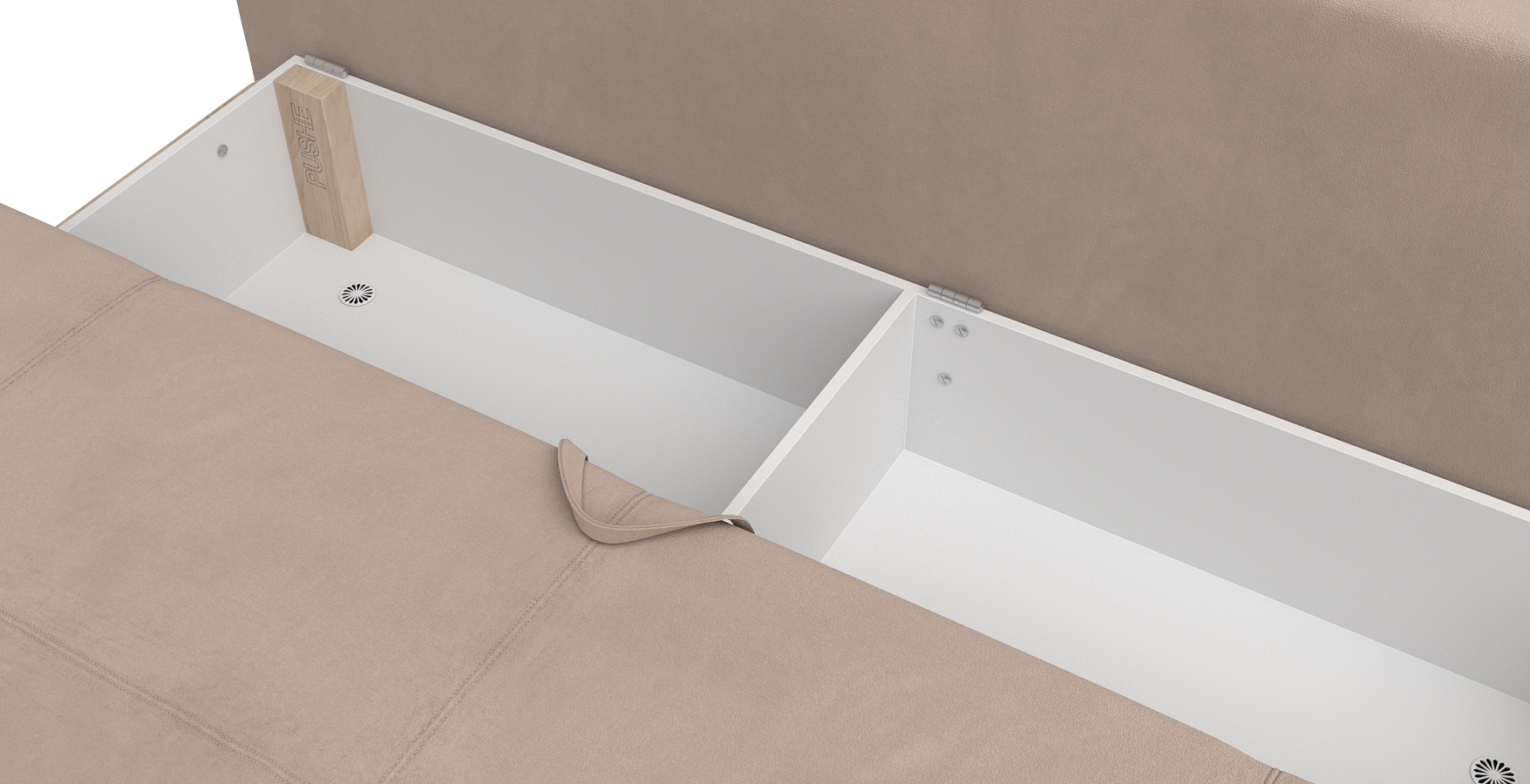 : диван с этим механизмом занимает не очень много пространства, может находиться как около стены, так и в центре помещения;