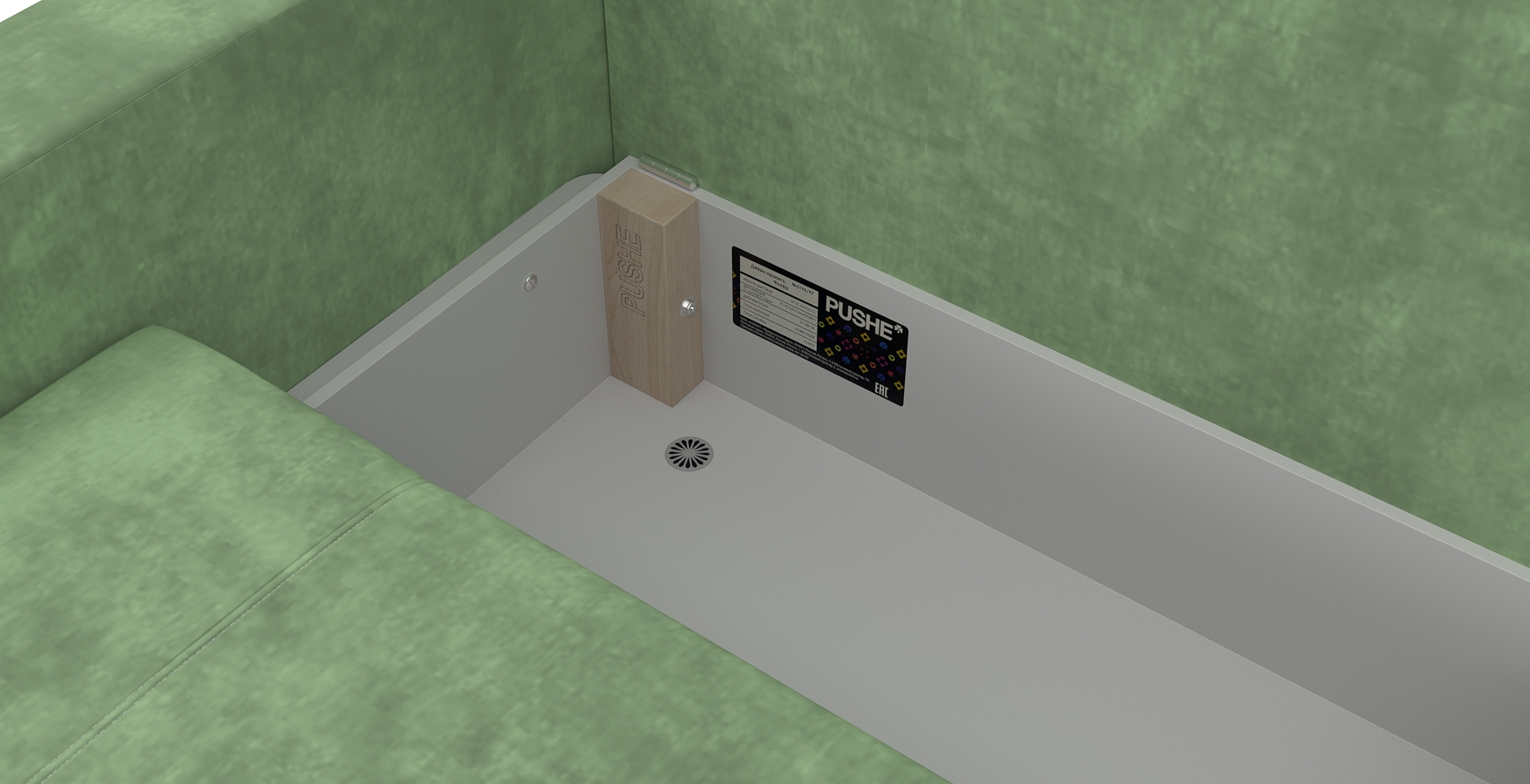 : диван с указанным механизмом занимает совсем немного пространства, может располагаться как около стены, так и в середине помещения.