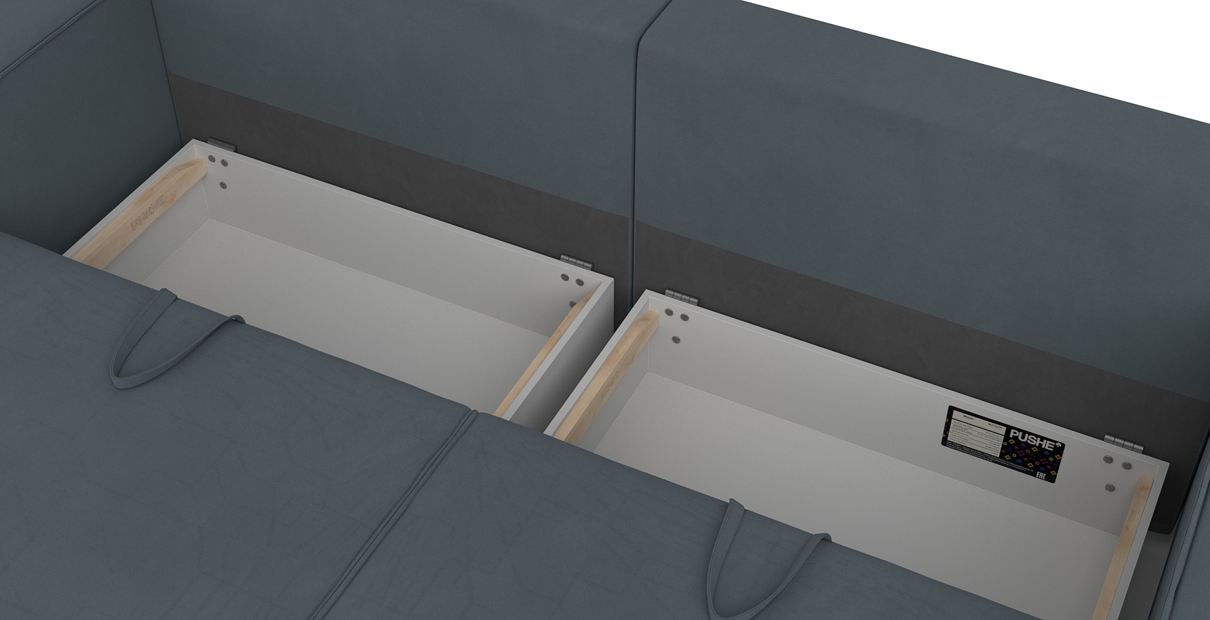 два бельевых ящика, размер каждого: 93,5 х 59 х 20 см;