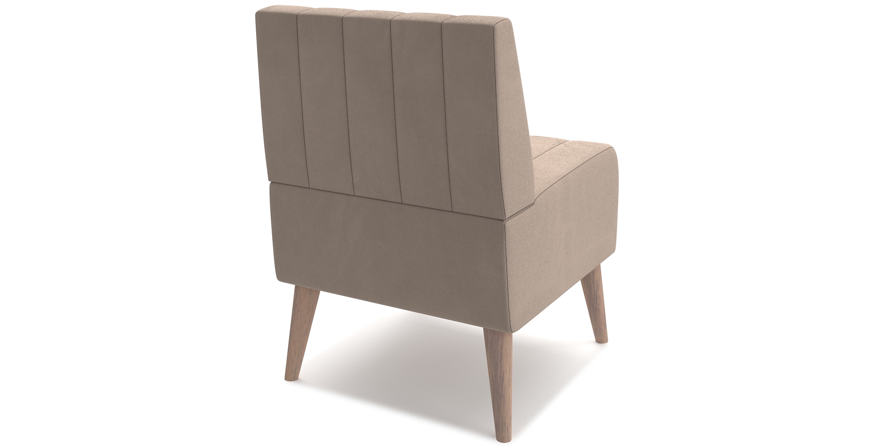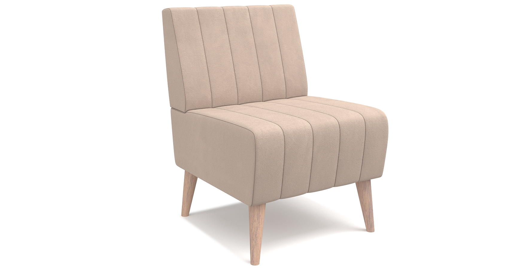 Кресло «Норман» выполнено в минималистском ключе. Сиденье и спинка оформлены с помощью стройного ряда параллельных прострочек на обивке, придающих визуальных ритм модели и помогающей ей лучше вписаться в геометричные каноны стиля. Кресло установлено на высокие деревянные опоры, благодаря которым уборка в доме становится проще, а сама конструкция кажется более легкой. Такую модель можно поставить в любом помещении, будь то гостиная, кухня, спальня или даже прихожая.