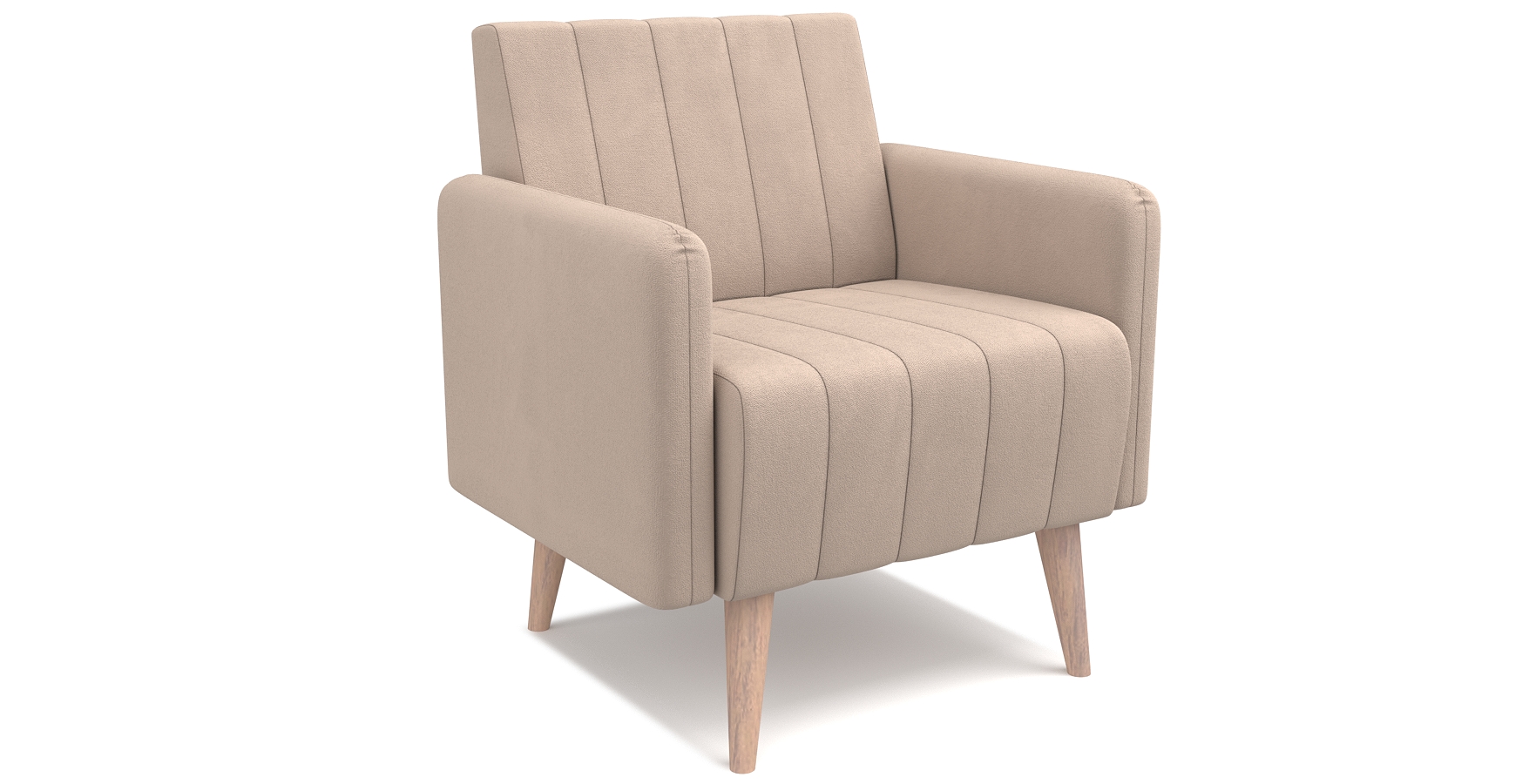Кресло «Норман 2» выполнено в минималистском ключе. Сиденье и спинка оформлены с помощью стройного ряда параллельных прострочек на обивке, придающих визуальных ритм модели и помогающей ей лучше вписаться в геометричные каноны стиля. По бокам сиденье обрамляют аккуратные округлые подлокотники, украшенные небольшим рядом складок в районе спинки. Кресло установлено на высокие деревянные опоры, благодаря которым уборка в доме становится проще, а сама конструкция кажется более легкой. Такую модель можно поставить в любом помещении, будь то гостиная, кухня, спальня или даже прихожая.