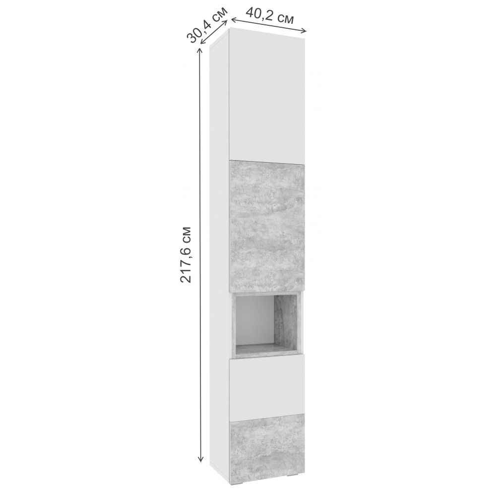 Стеллаж Лонгфорд белый четырьмя дверцами и нишей, узкий. Материал каркаса: ЛДСП. Цвет каркаса: Белый / бетон светлый. Сочетание белого цвета и бетона подойдёт ко многим лофтовым вариантам интерьера