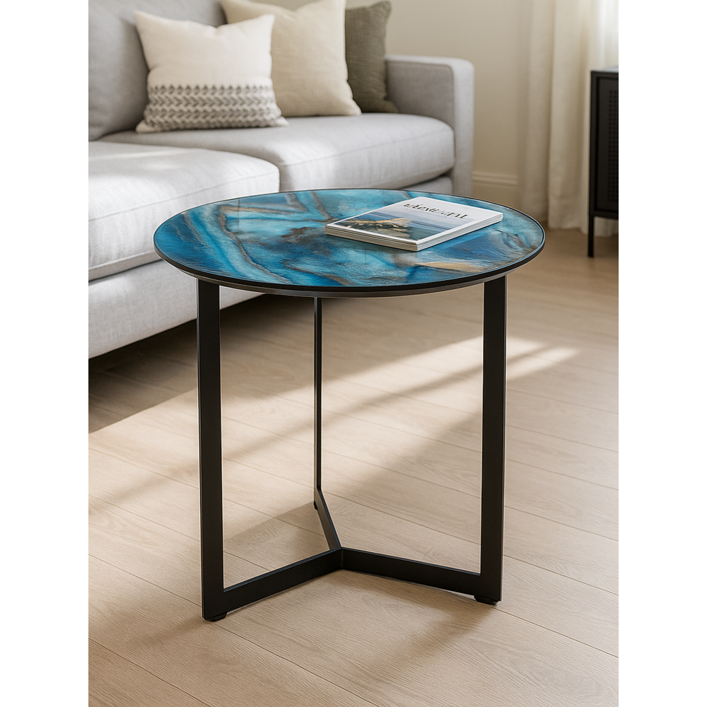 Журнальный столик Роб D-45см. Материал каркаса металл, столешница стекло. Толщина всей столешницы 20 мм. Толщина стекла 4мм. Гладкая поверхность. Прочный каркас - толщина металла 4мм. Порошковое окрашивание, дополнительная защита от царапин и повреждений.