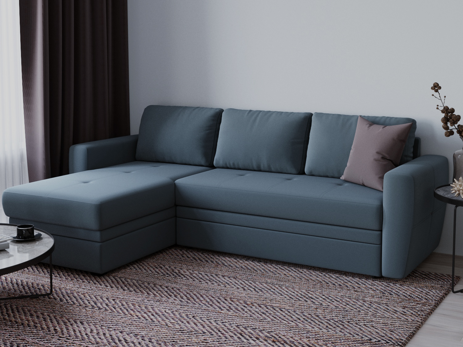 Угловой диван-кровать «Лакки» имеет классический внешний вид: три большие прямоугольные подушки спинки, просторное сиденье с точечными утяжками на ткани, подлокотники, расширяющиеся в верхней части. Если вы не слишком жалуете дизайнерские эксперименты с формой, предпочитаете сдержанные, традиционные интерьеры и ищите аналогичную мебель, «Лакки» станет подходящим выбором для вас. При этом функциональность модели соответствует всем современным стандартам: секцию канапе можно переставить слева направо или наоборот самостоятельно, без помощи сборщиков; наполнитель рассчитан на ежедневные длительные нагрузки и обладает анатомическими свойствами; нагрузка распределяется равномерно, поясничный и плечевые пояса получают необходимую поддержку.