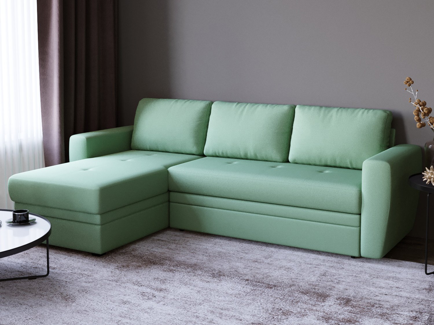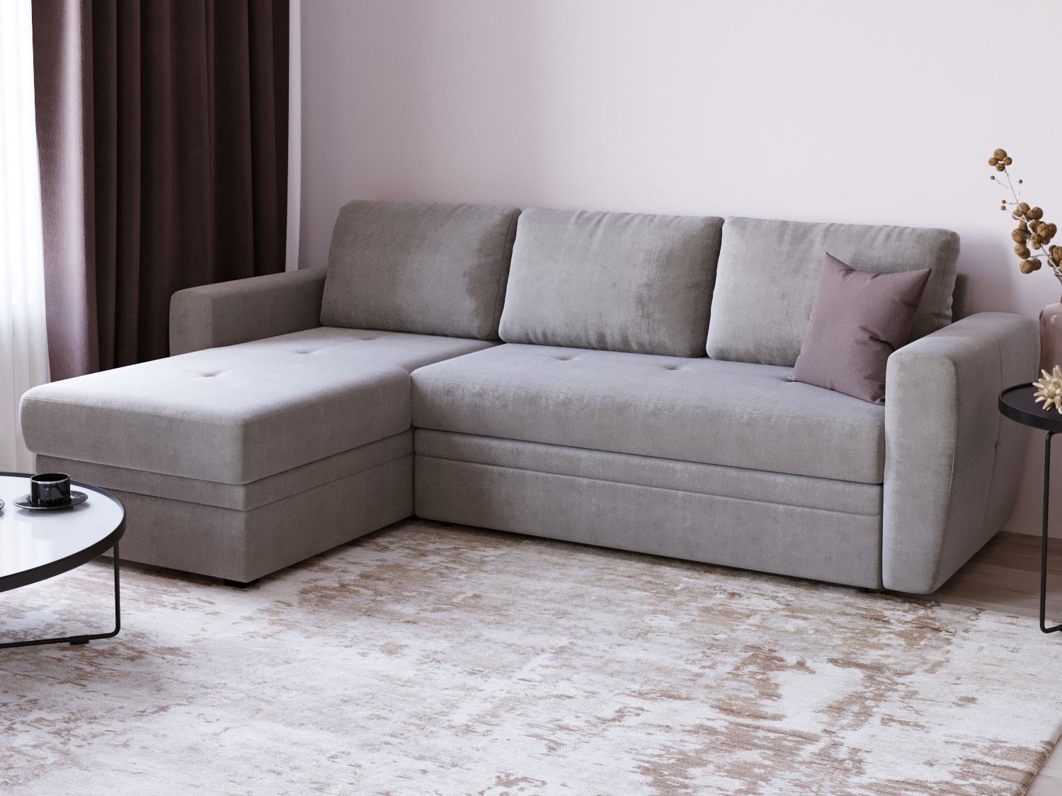 Угловой диван-кровать «Лакки» имеет классический внешний вид: три большие прямоугольные подушки спинки, просторное сиденье с точечными утяжками на ткани, подлокотники, расширяющиеся в верхней части. Если вы не слишком жалуете дизайнерские эксперименты с формой, предпочитаете сдержанные, традиционные интерьеры и ищите аналогичную мебель, «Лакки» станет подходящим выбором для вас. При этом функциональность модели соответствует всем современным стандартам: секцию канапе можно переставить слева направо или наоборот самостоятельно, без помощи сборщиков; наполнитель рассчитан на ежедневные длительные нагрузки и обладает анатомическими свойствами; нагрузка распределяется равномерно, поясничный и плечевые пояса получают необходимую поддержку.