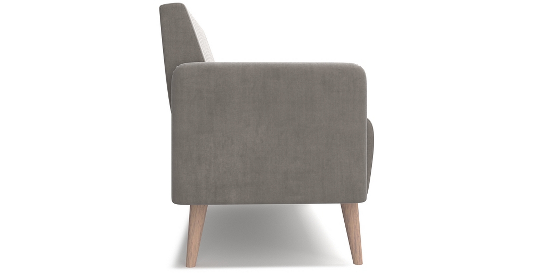 Диван «Норман 2» выполнен в минималистском ключе. Сиденье и спинка оформлены с помощью стройного ряда параллельных прострочек на обивке, придающих визуальных ритм модели и помогающей ей лучше вписаться в геометричные каноны стиля. По бокам сиденье обрамляют аккуратные округлые подлокотники. Диван установлен на высокие деревянные опоры, благодаря которым уборка в доме становится проще, а сама конструкция кажется более легкой. Такую модель можно поставить в любом помещении, будь то гостиная, кухня, спальня или даже прихожая.