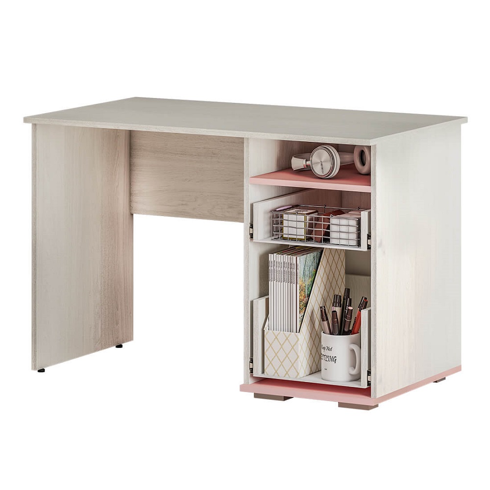 Нежные пудрово-розовые тона на фасаде письменного стола Малибу прекрасно сочетаются с классическим светлым декором корпуса. Два выкатных ящика с фотопечатью и ручками-стразами пригодятся для хранения школьных принадлежностей и игрушек маленькой принцессы. Ручки модульной системы Малибу выполнены из высококачественного АБС пластика в форме горного хрусталя на хромированной ножке. Шариковые направляющие полного выдвижения позволяют плавно и бесшумно выкатывать нижние ящики.