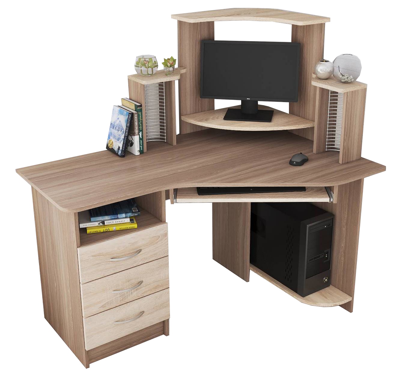 Угловой компьютерный стол Грета-7 - воплощение практичности и залог грамотно продуманного рабочего уголка дома. Модель имеет просторную столешницу со скругленными углами, открытую надстройку под установку компьютера и сопутствующей техники, выдвижную панель для клавиатуры, а также место для процессора. Если Вы хотите окружить себя комфортом и сэкономить место в комнате, Грета-7 - лучшее решение!