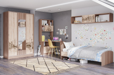 - Широкий выбор модулей: функциональные кровать-чердак и односпальная кровать, прикроватная тумба, разнообразие вместительных шкафов, угловое завершение, комод, навесная секция, письменный стол и стол с надстройкой.