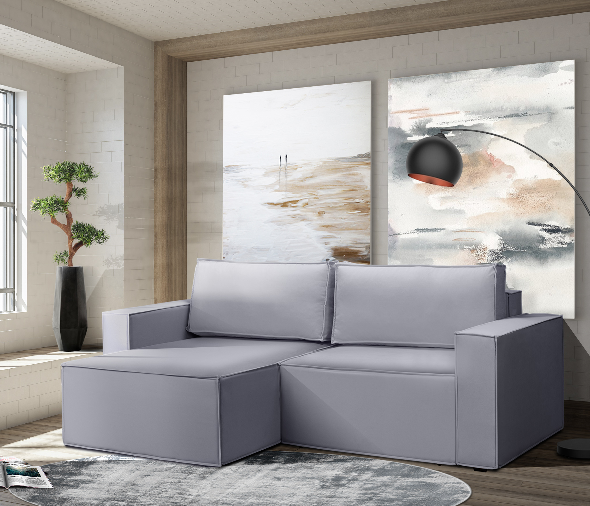 Отзывы о Столплит Диван угловой Чикаго со спальным местом, микровелюр Светло-серый