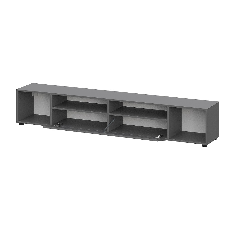 Тумба под ТВ из модульной серии Денвер в цвете графит дополнит гостиную в сочетании со шкафами и навесными полками или навесными шкафами, на выбор.