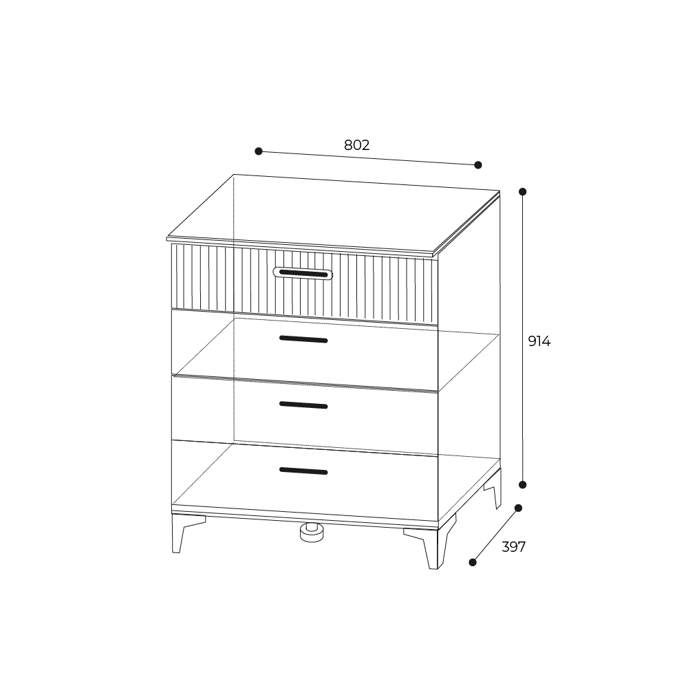 Компактный комод с четырьмя выдвижными ящиками поможет организовать место для хранения, не загромождая пространство комнаты.
