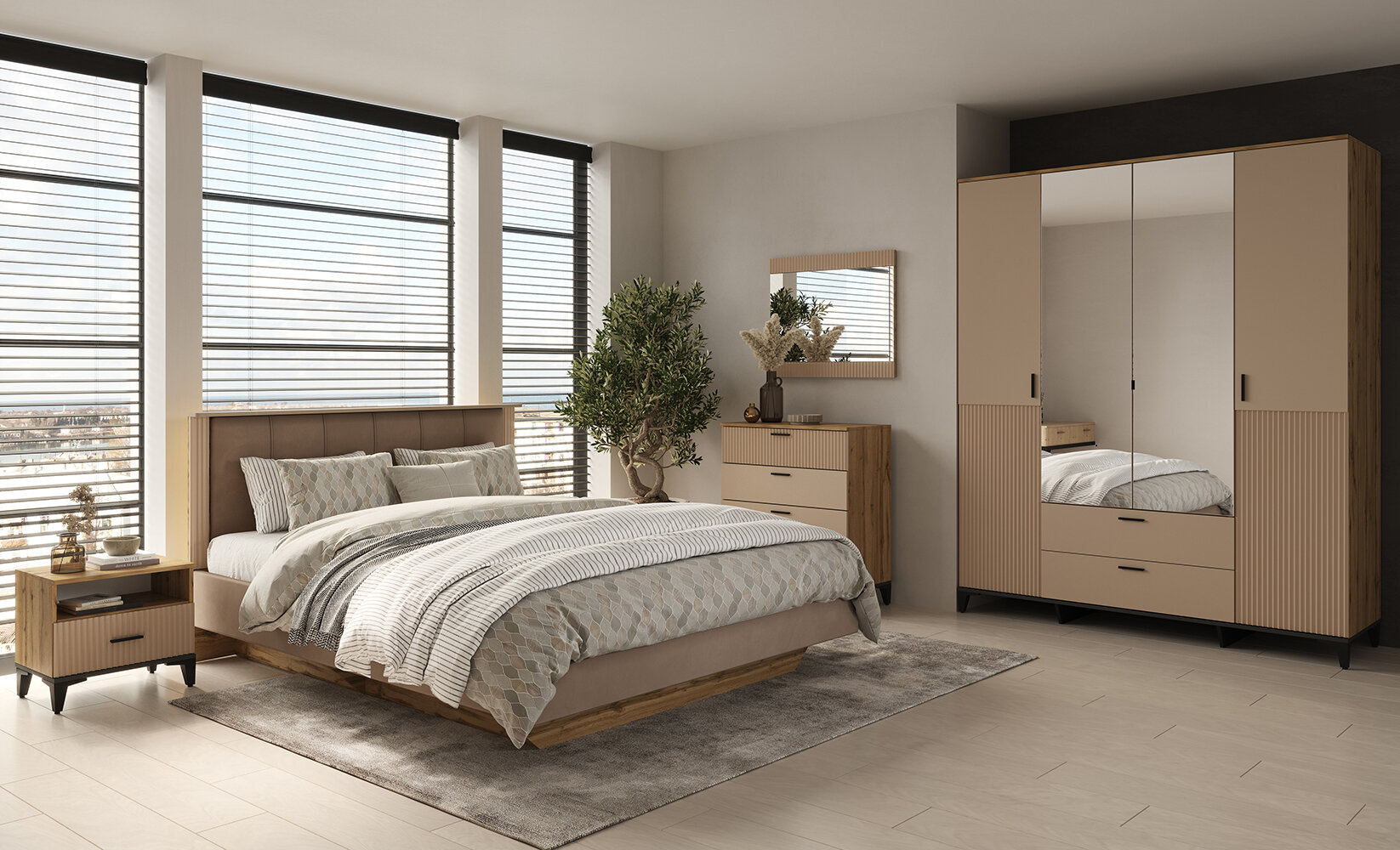 Коллекция Дюна включает в себя также другие предметы мебели, такие как шкафы, туалетный столик и комоды, что позволит Вам создать гармоничный интерьер в едином стиле.