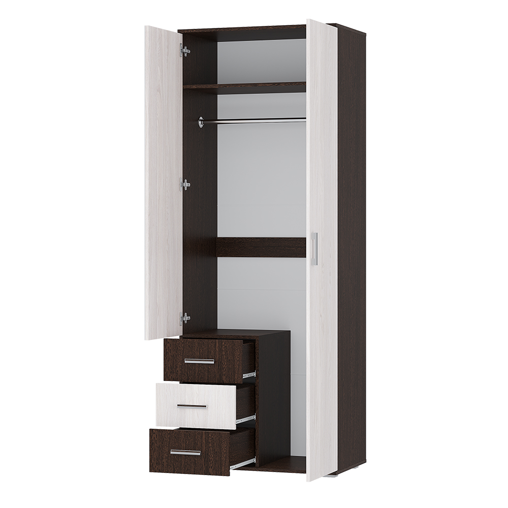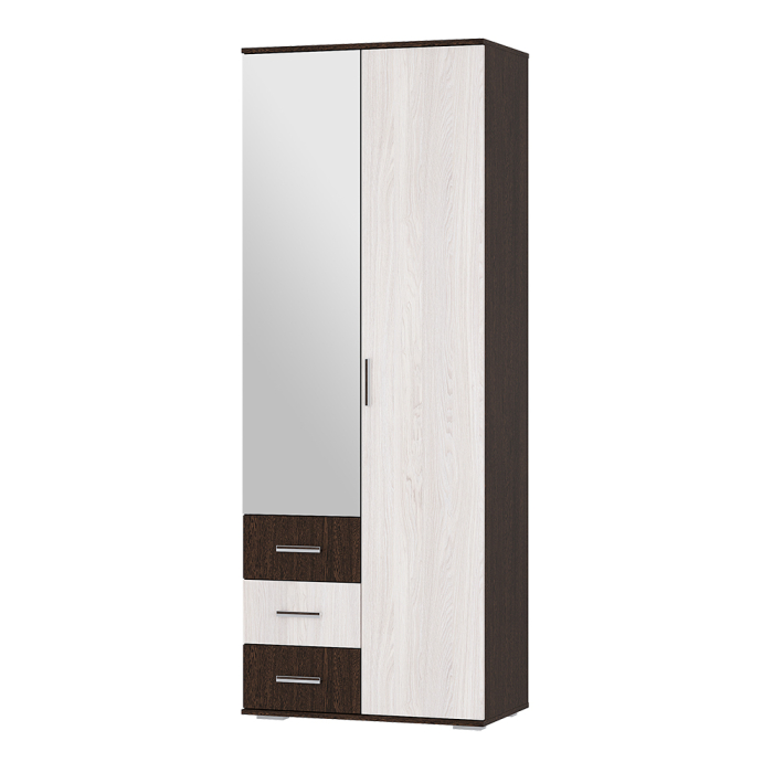 Двухстворчатый шкаф Белла в цвете венге/ясень белый — это стильное и функциональное решение для хранения вещей. Он оснащён тремя выдвижными ящиками и зеркалом на одной из дверей. Внутри шкафа расположена металлическая перекладина для вешалок и полка. Этот шкаф будет отлично смотреться в интерьере и поможет организовать хранение одежды и аксессуаров.