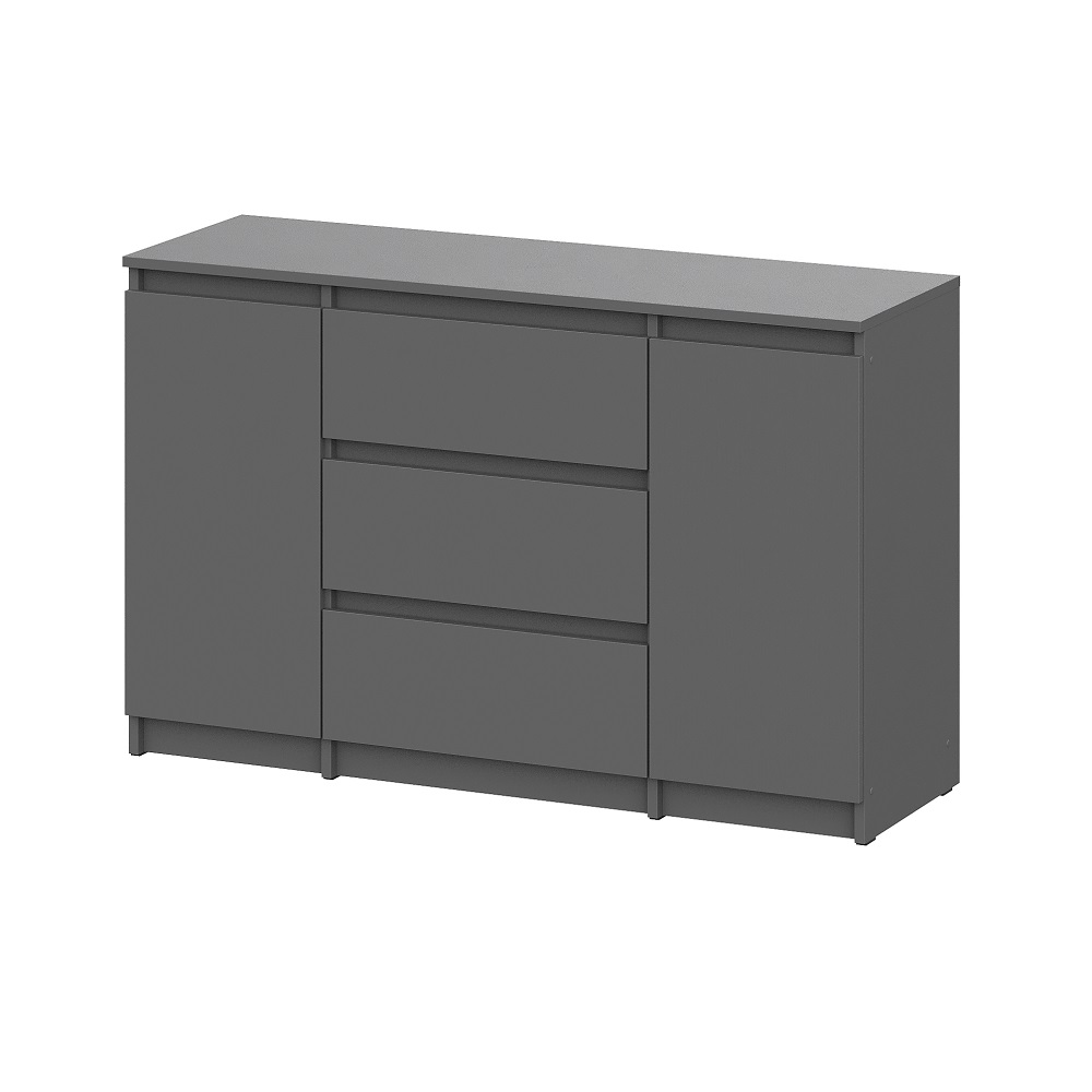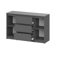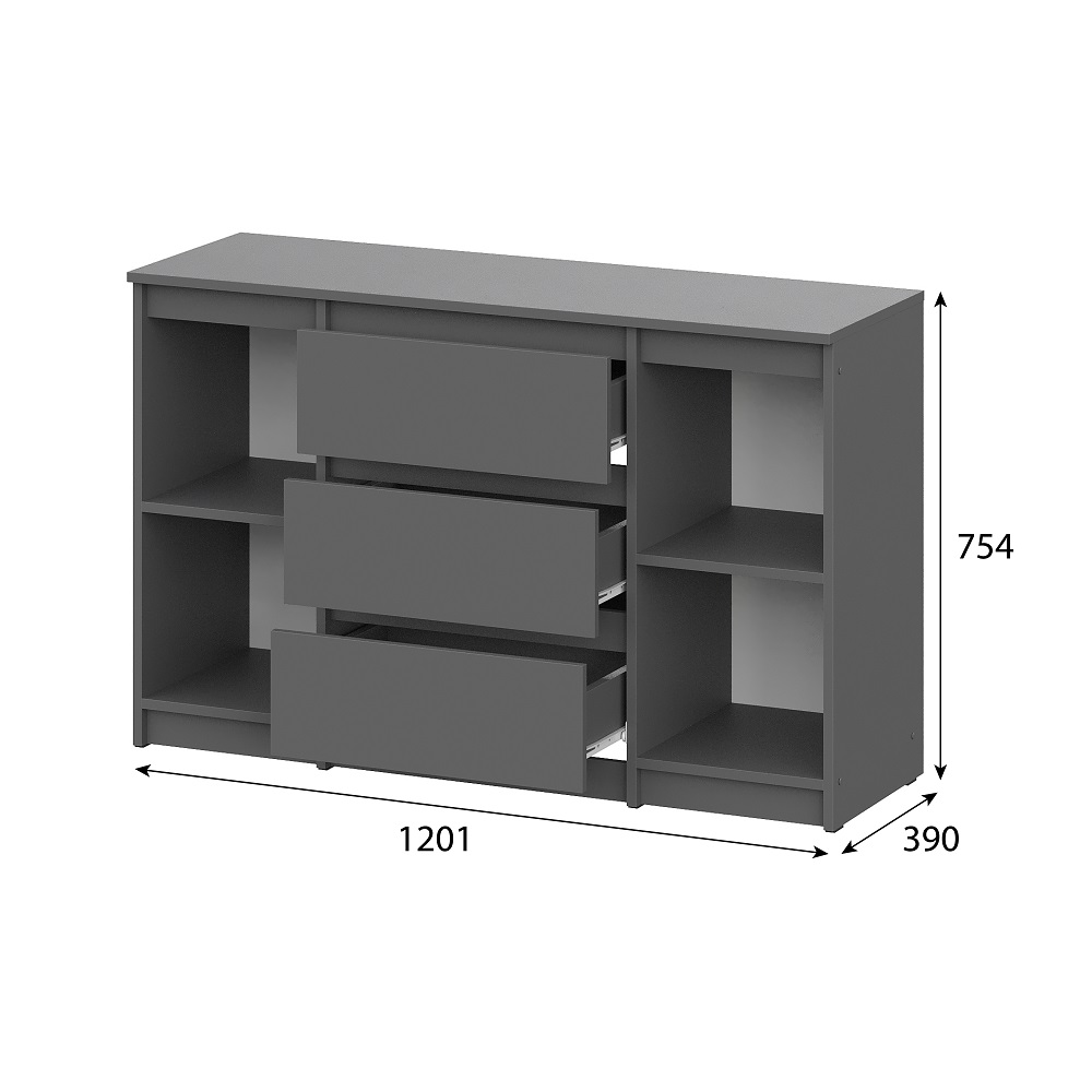 Комод с ящиками из модульной серии Денвер дополнит современный интерьер комнаты. Три вместительных ящика и полки за распашными дверьми позволят организовать место хранения белья и одежды, аксессуаров и других нужных предметов.
