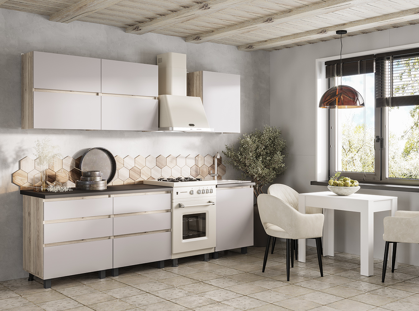 Современная и элегантная кухня Берген Лайт - это многофункциональное решение для вашего дома в стиле минимализм. Отсутствие лишних деталей, чистые линии с древесным декором - все это создает атмосферу спокойствия и гармонии.