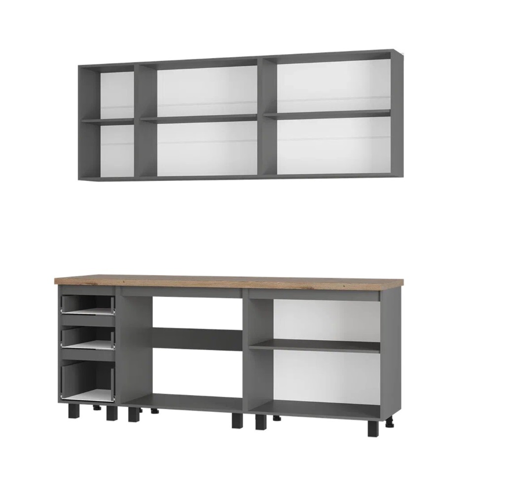 Размеры низ: ширина - 2000 мм, высота - 858 мм, глубина - 595 мм. Размеры верх: ширина - 2000 мм, высота - 720 мм, глубина - 304 мм.