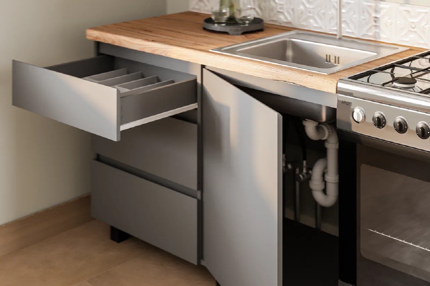 Прямые четкие линии, матовые фасады без декора и гармоничное сочетание всех блоков делает этот комплект универсальным.