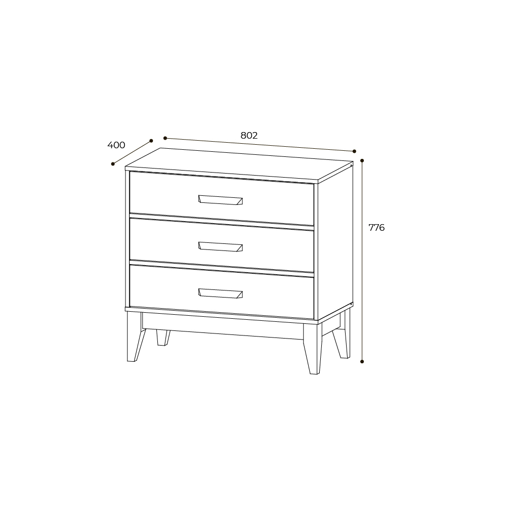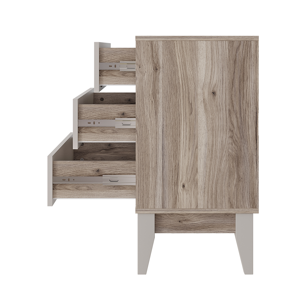 Комод Скандика оснащён тремя вместительными выдвижными ящиками с плавным механизмом открытия, на шариковых направляющих. Он подойдет и для спальни, и для гостиной, и для детской.