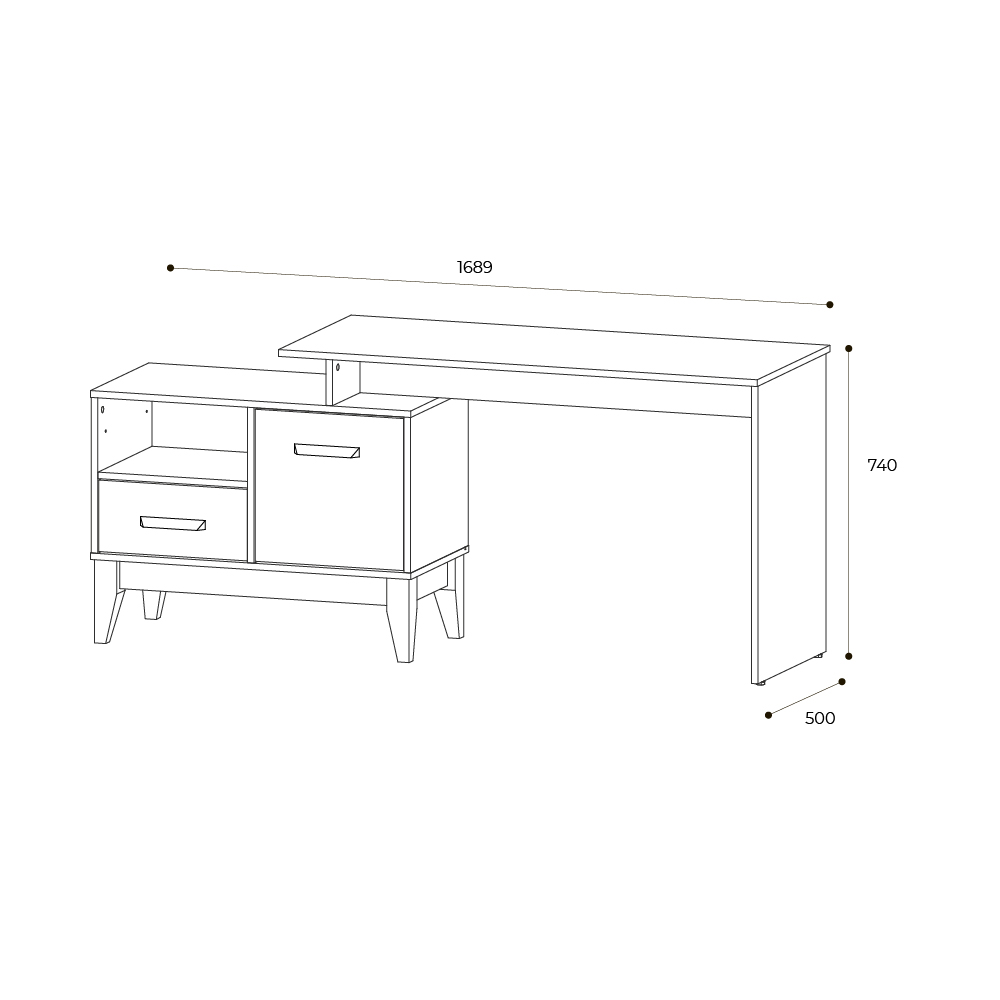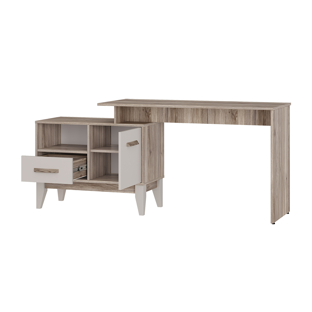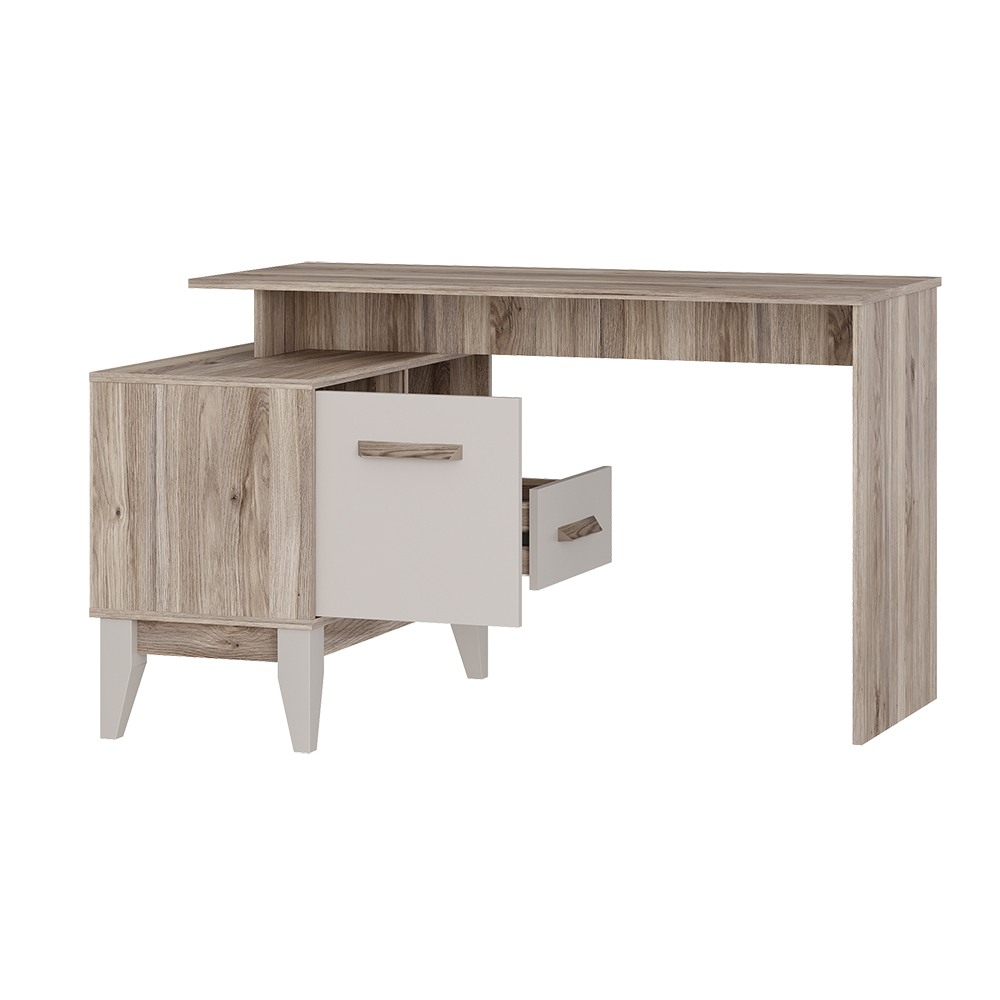 Письменный стол Скандика - это универсальное решение для дома или офиса. У данной модели удобная рабочая поверхность, встроенная тумба, которая состоит из просторного отсека за дверцей, ящика и одной открытой полки. Благодаря компактным размерам стол не занимает много места и подойдет для небольшой комнаты.