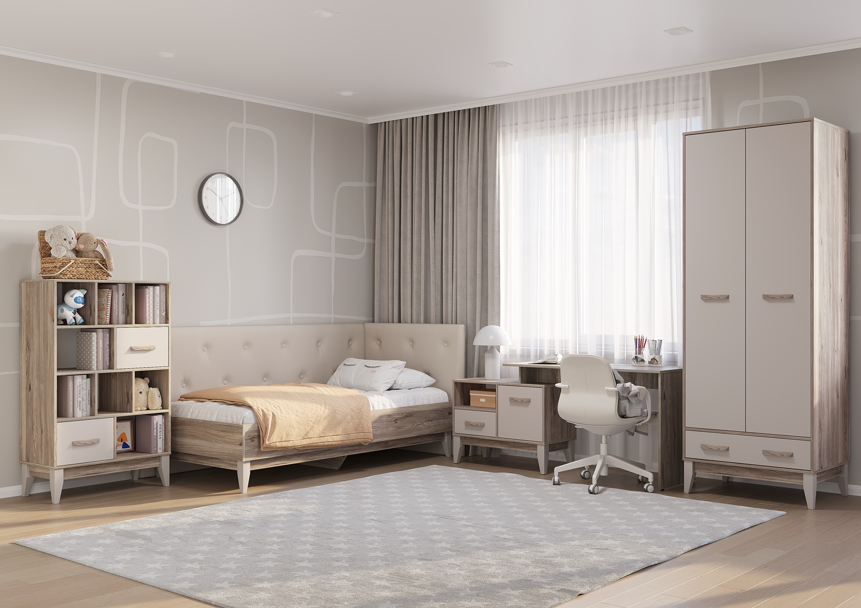 Кровать комплектуется проложками ДСП и мягким изголовьем, которое крепится на стену.