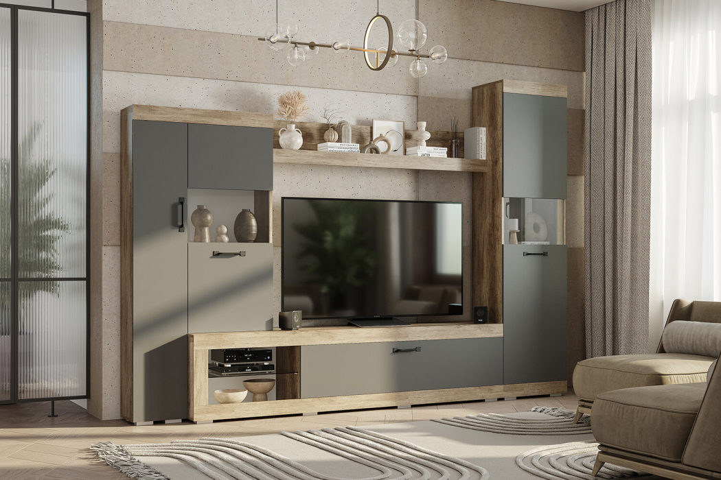 Отзывы о Столплит Стенка в гостиную Тесла ГС-01 Дуб каньон/Серый